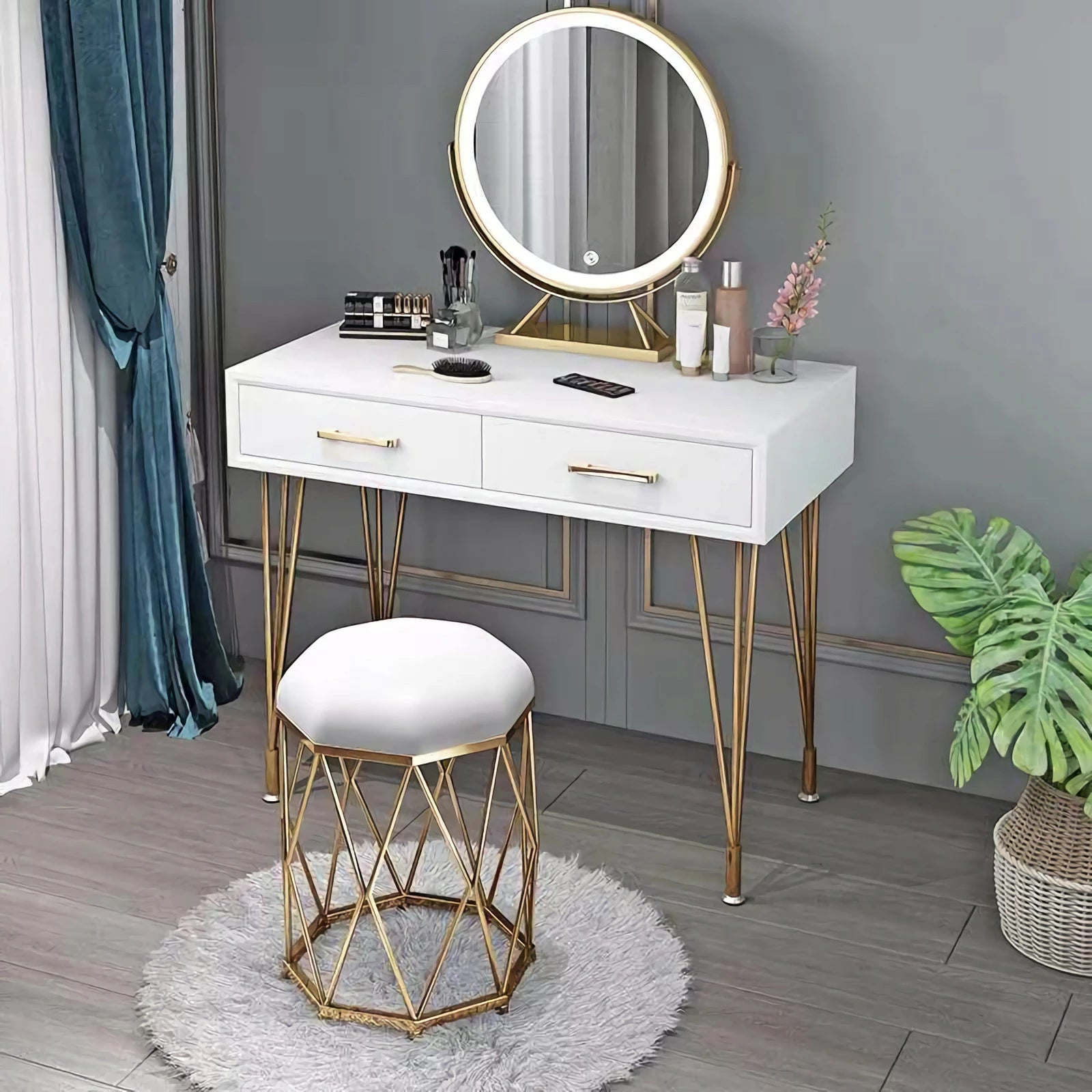 ドレッサーチェア化粧椅子イス鏡台用姫系金属製 丸いスツール  ゴールデンフランネル化粧台ベッドルームラウンジチェア モダンダイニングチェア SF09
