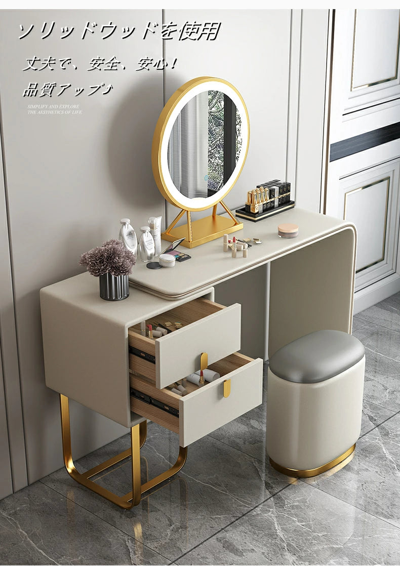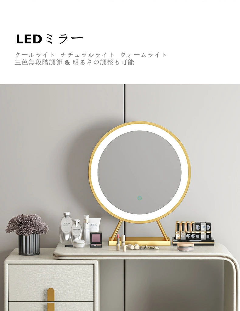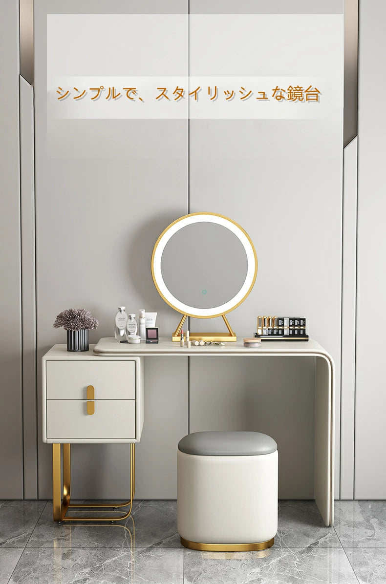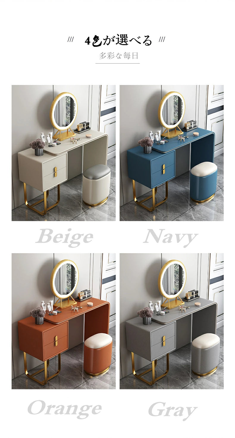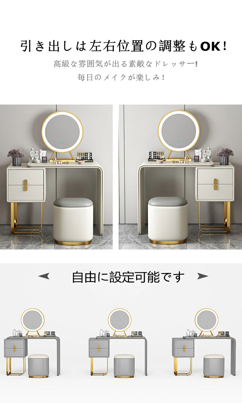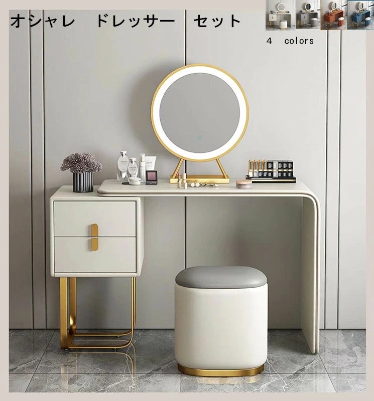 ドレッサー おしゃれ イタリア風 鏡台 レザー調 カラ 化粧台  ドレッサー LEDミラー スツール 化粧テーブル オシャレ エレガント セット J202