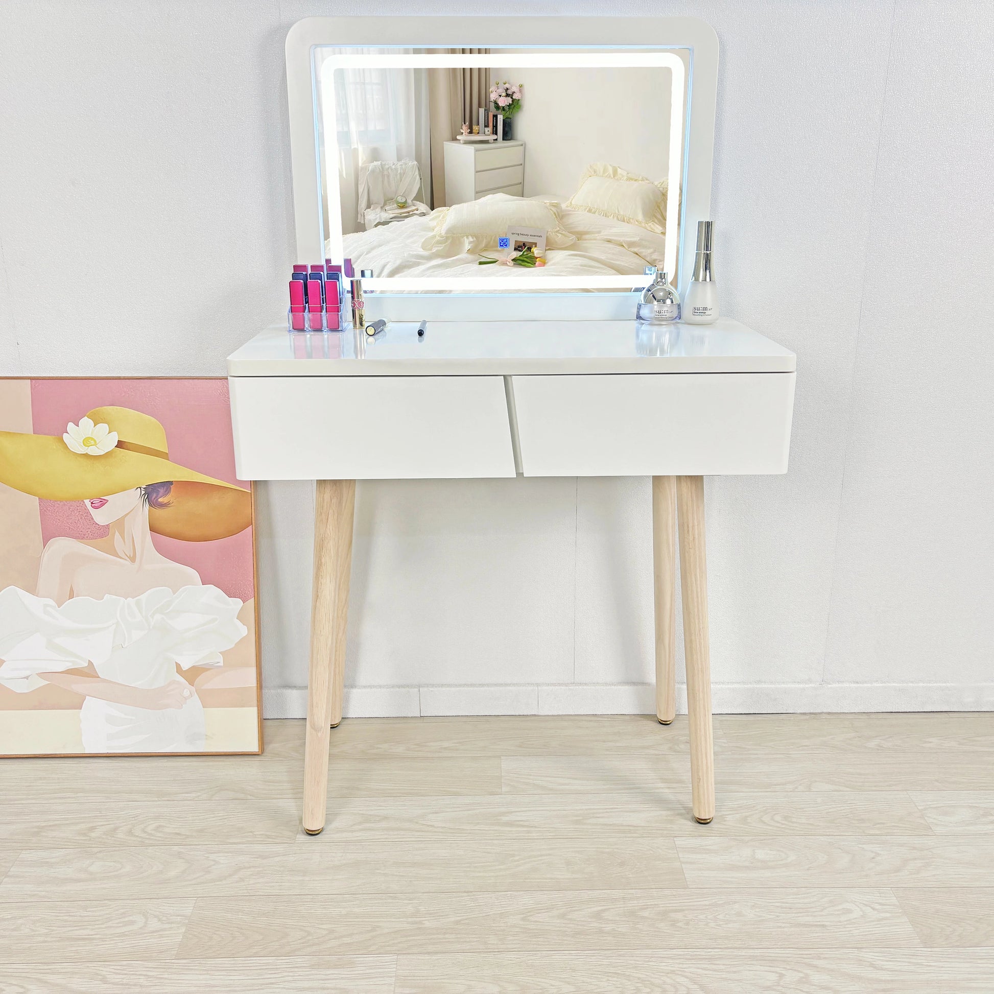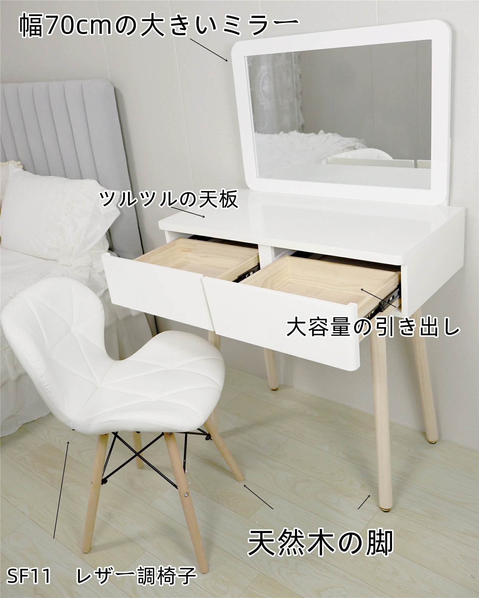 ドレッサー おしゃれ ワイト姫系 デスク コスメ台 化粧台 新生活応援 安い 北欧風鏡台 女優ミラー 幅70CM広い鏡 ドレッサーのみ 椅子なし 化粧テーブル 小さい化粧台 収納 ネイルサロン まつげサロン ヘアサロン  国内発送 J106