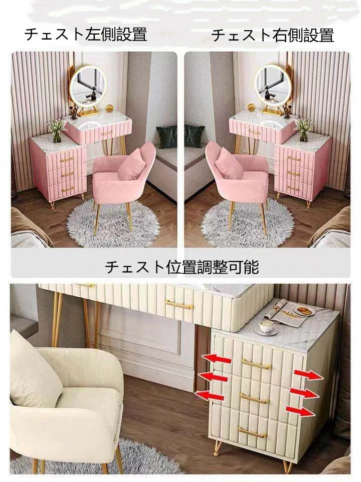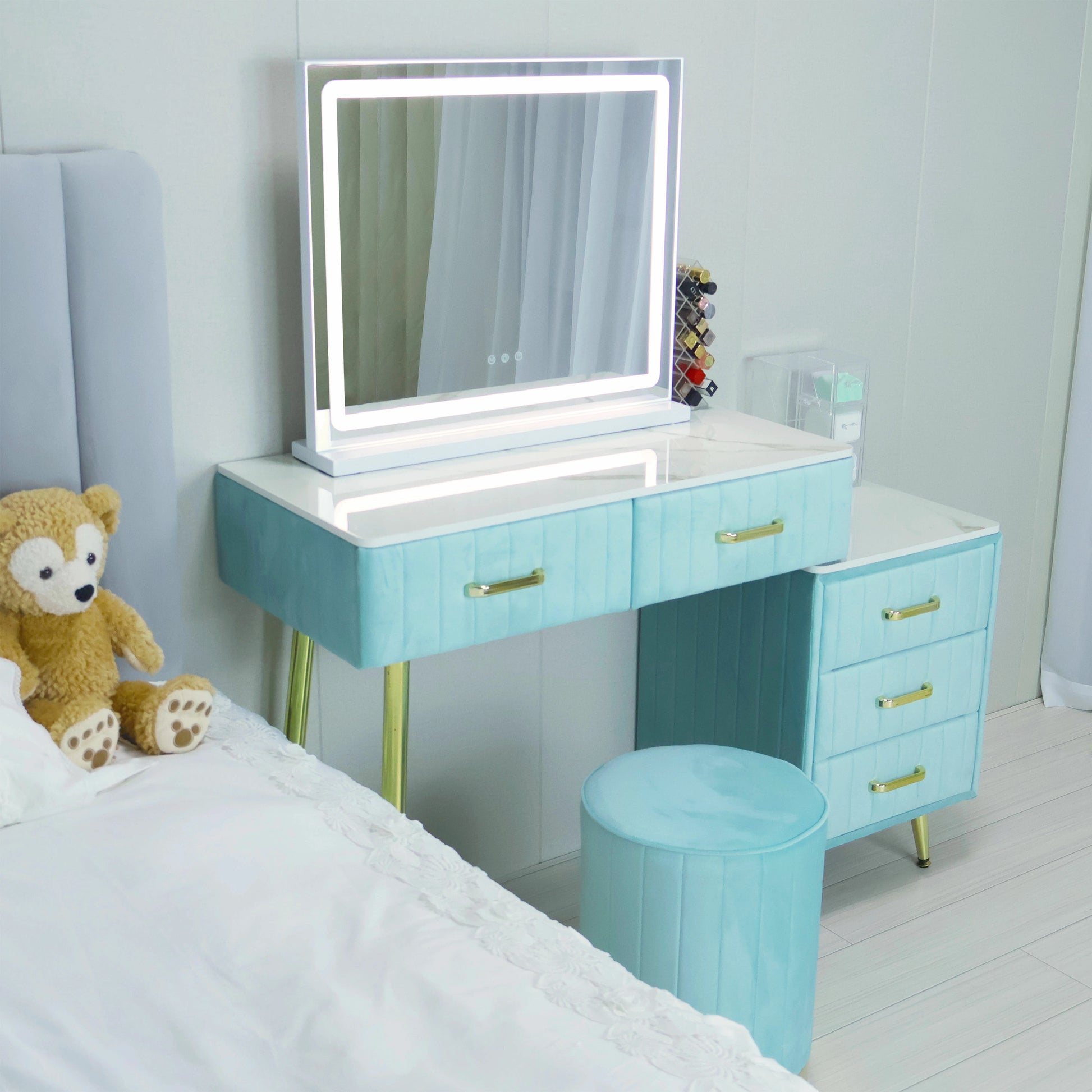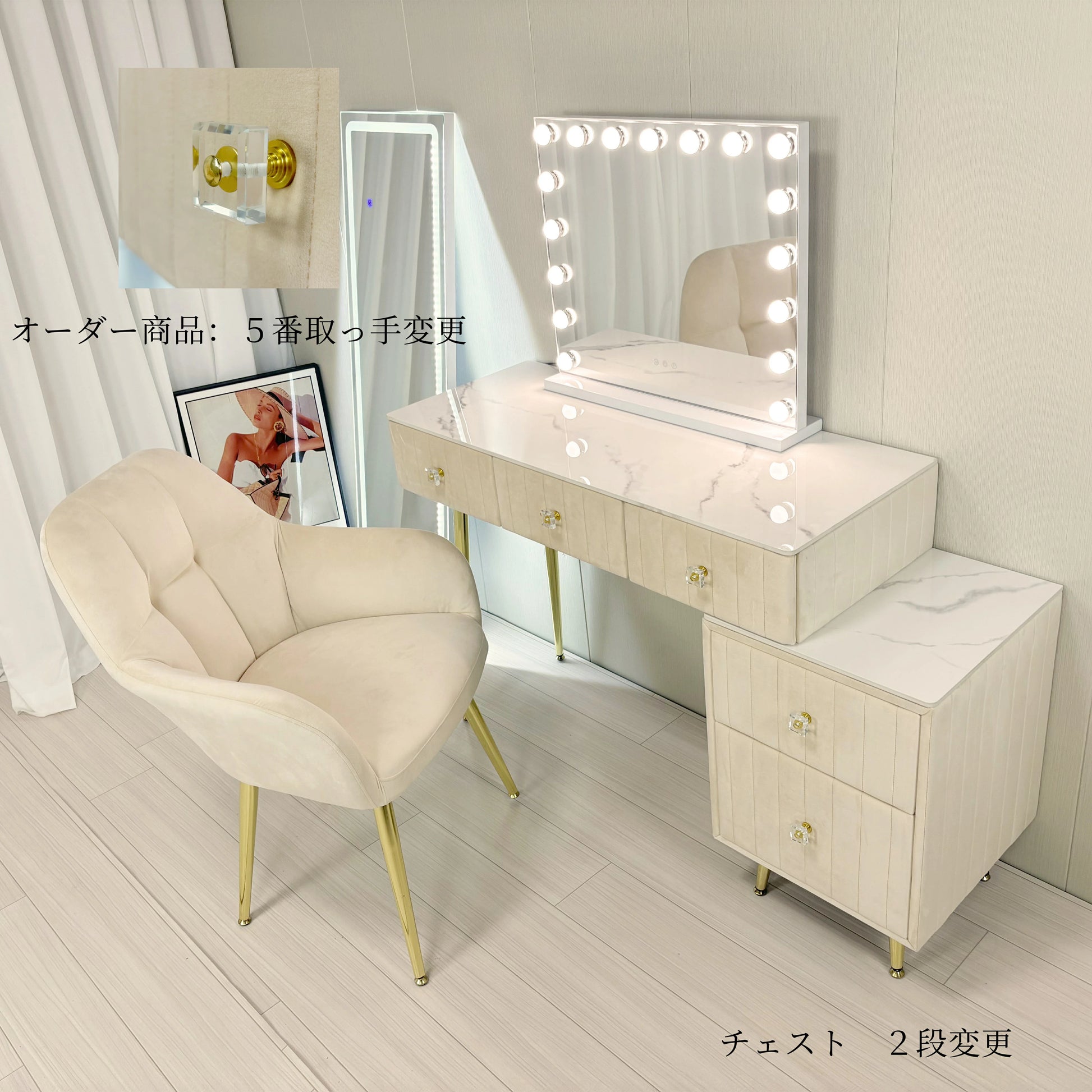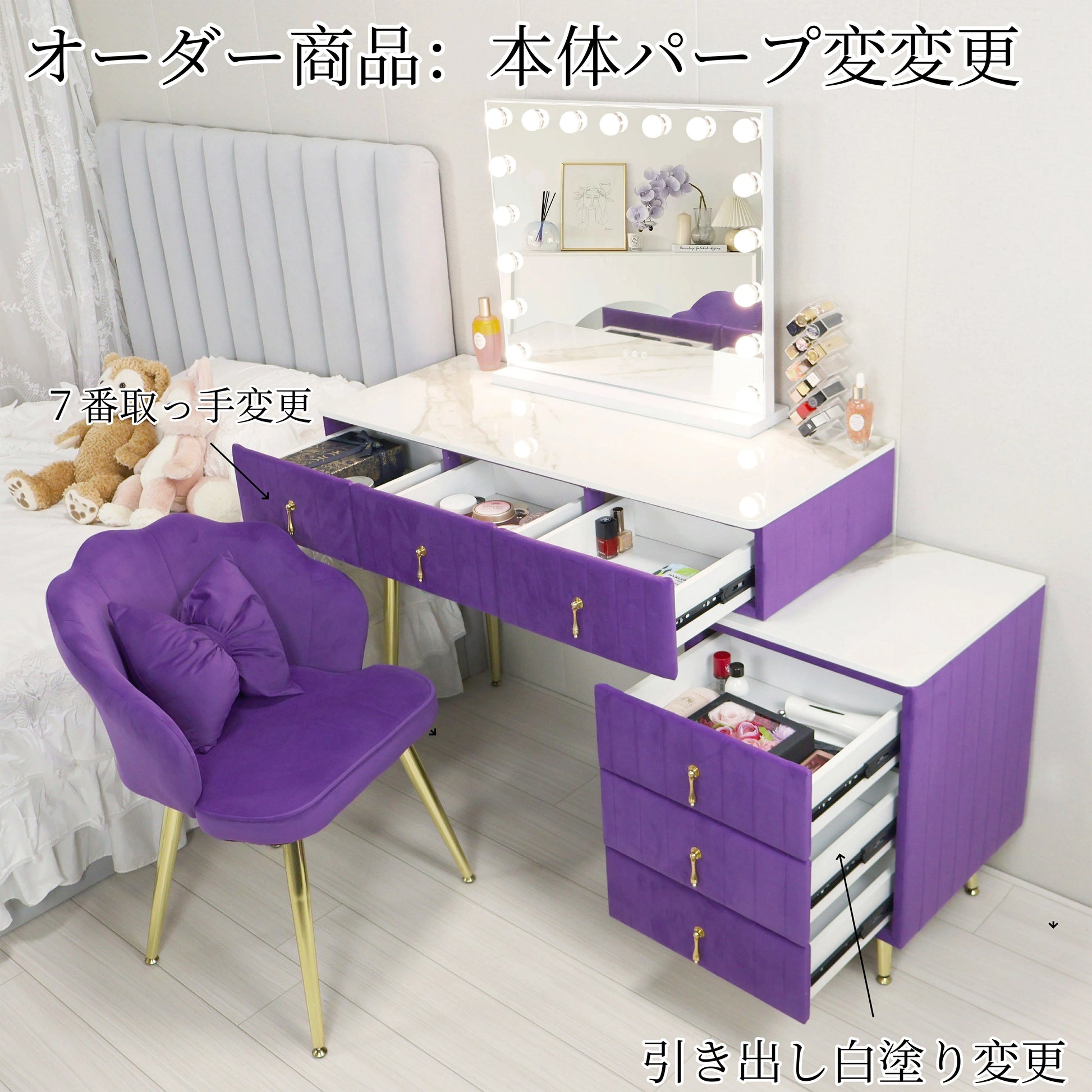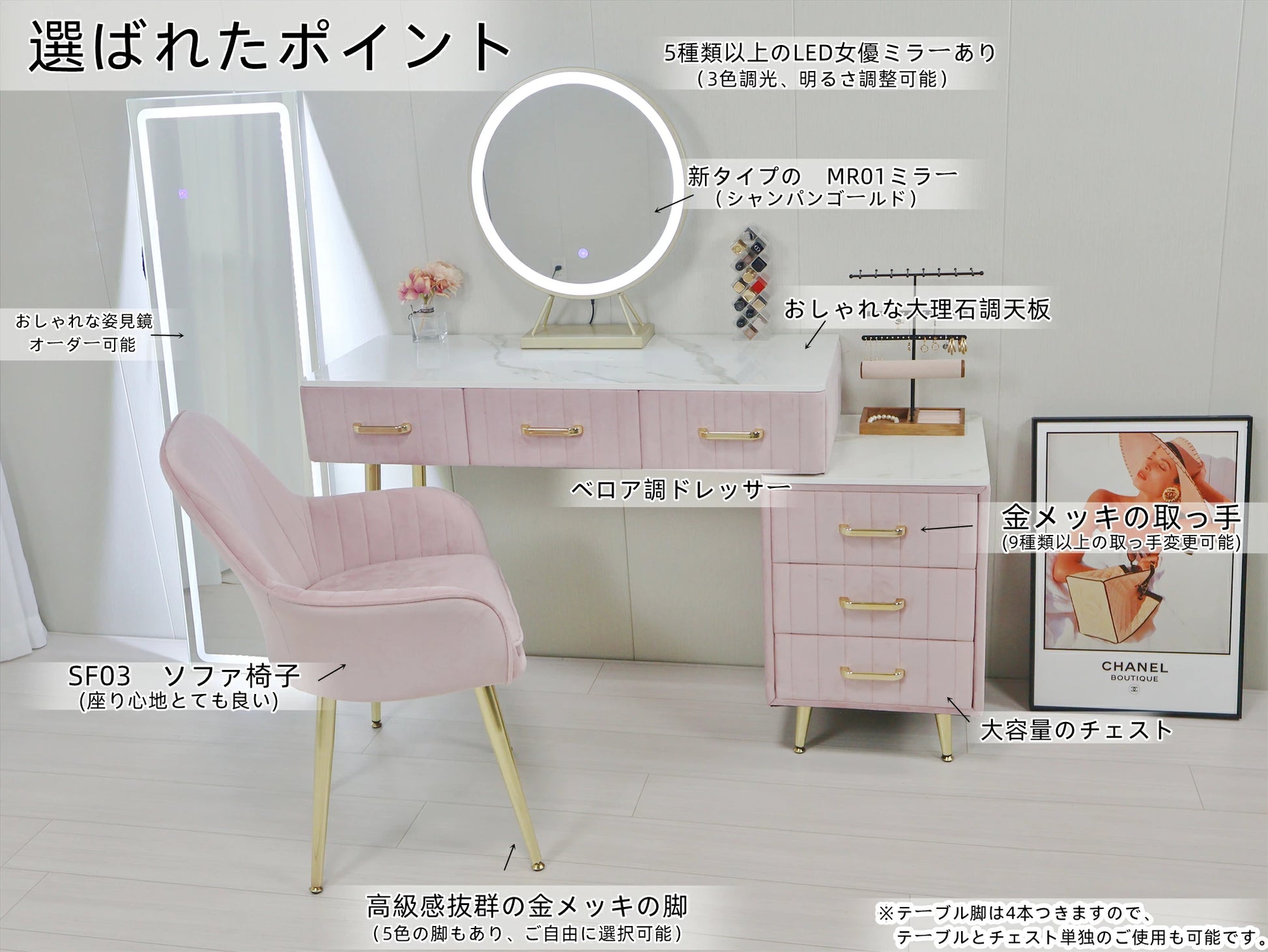 ドレッサー おしゃれ 女優ミラー《自社製品》可愛い デスク 欧風 鏡台 お姫系 ベロア調 テーブル 幅80㎝ 幅60㎝ 幅100㎝ チェスト スツール LEDミラー 寝室 化粧テーブル J108-2