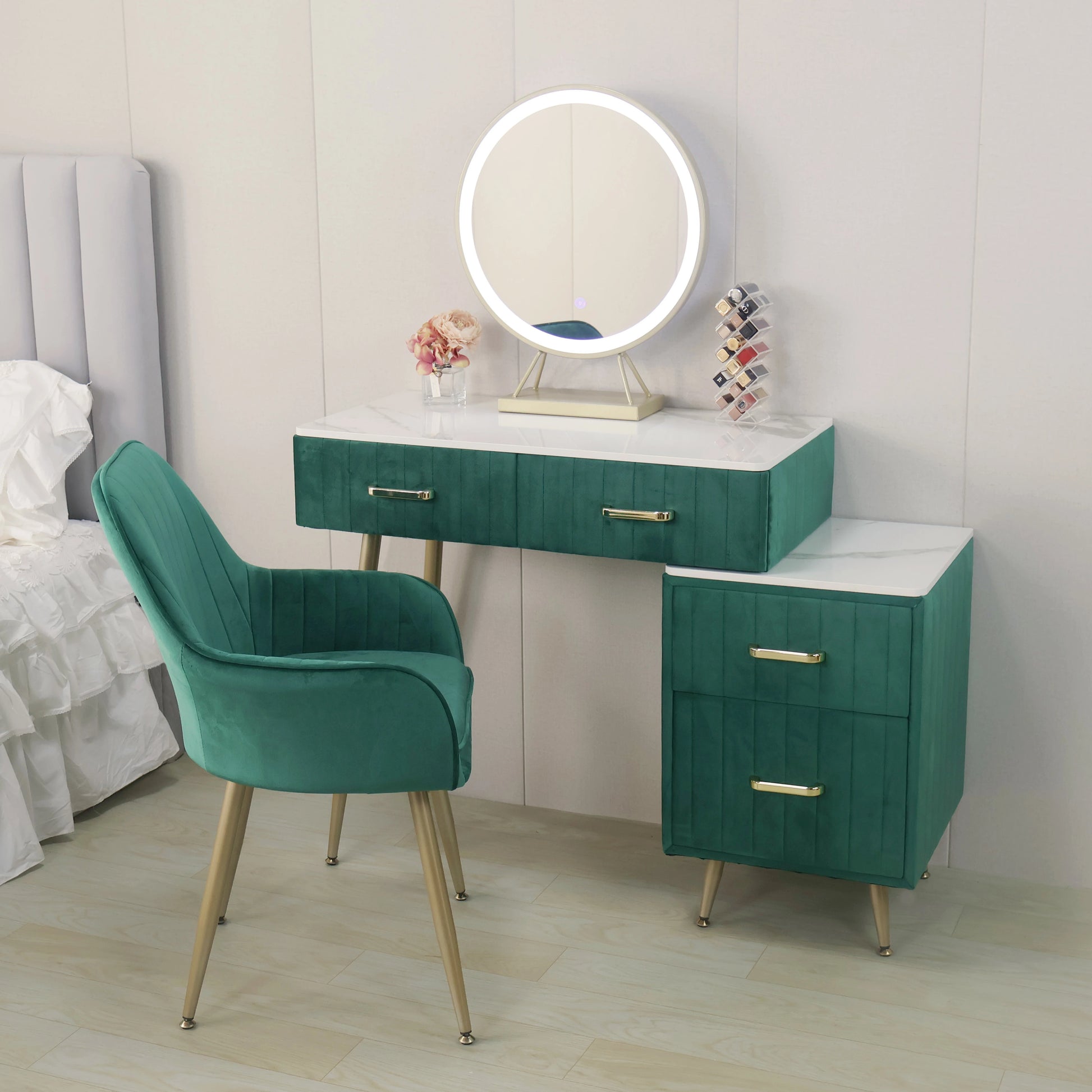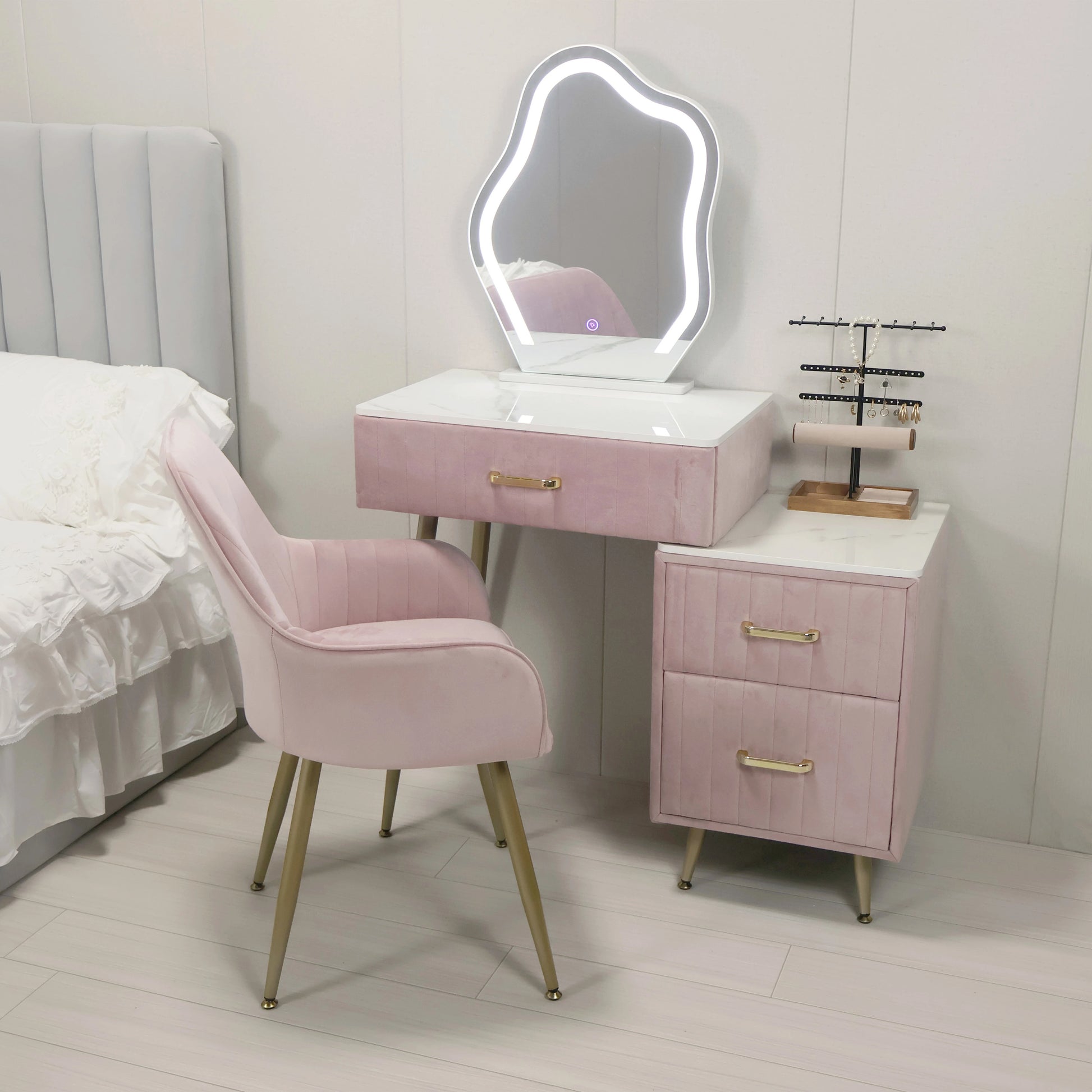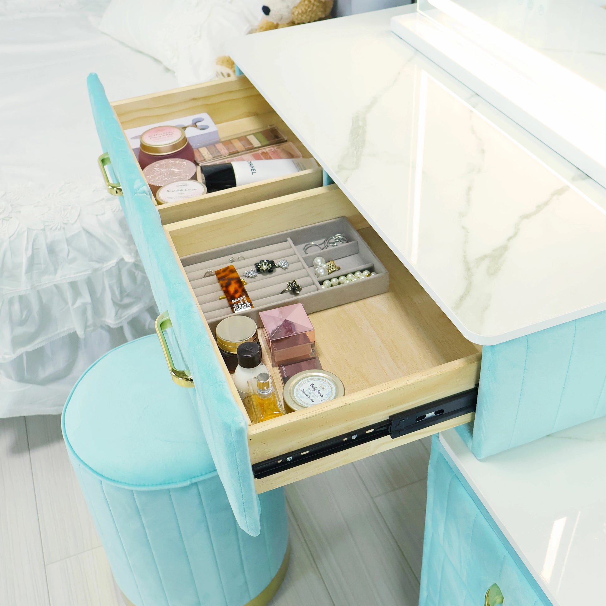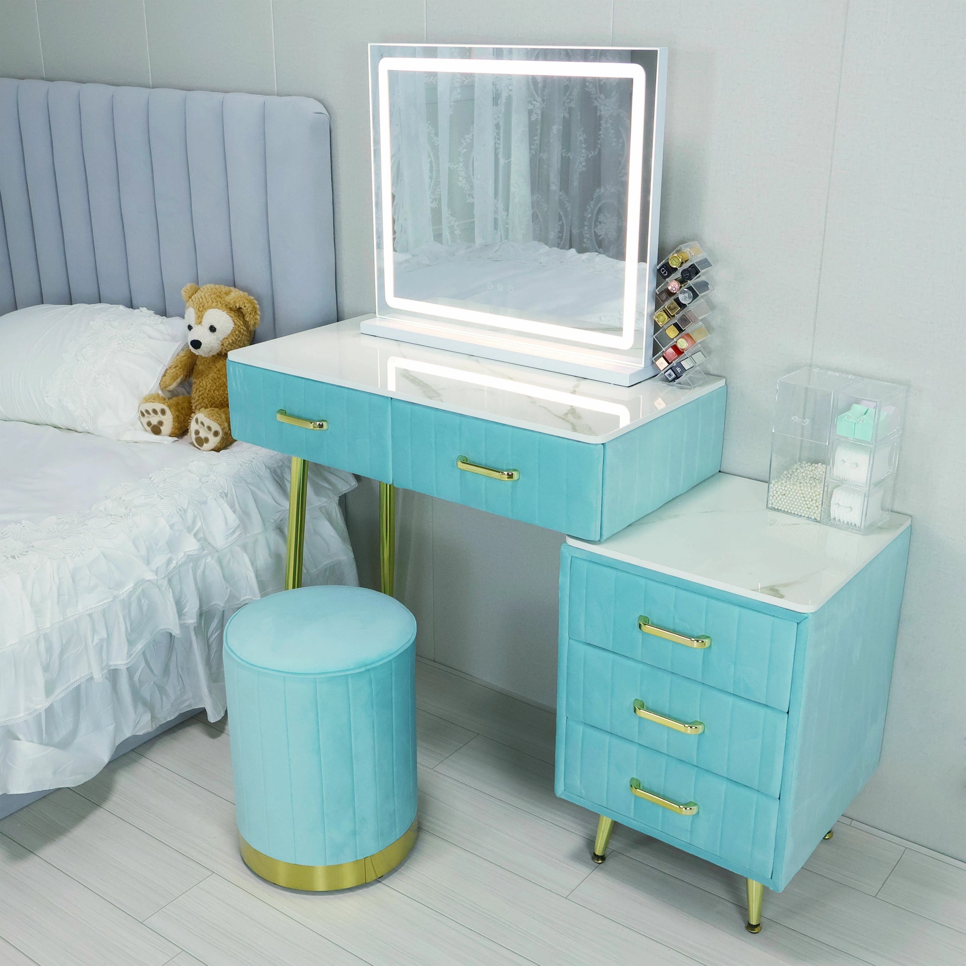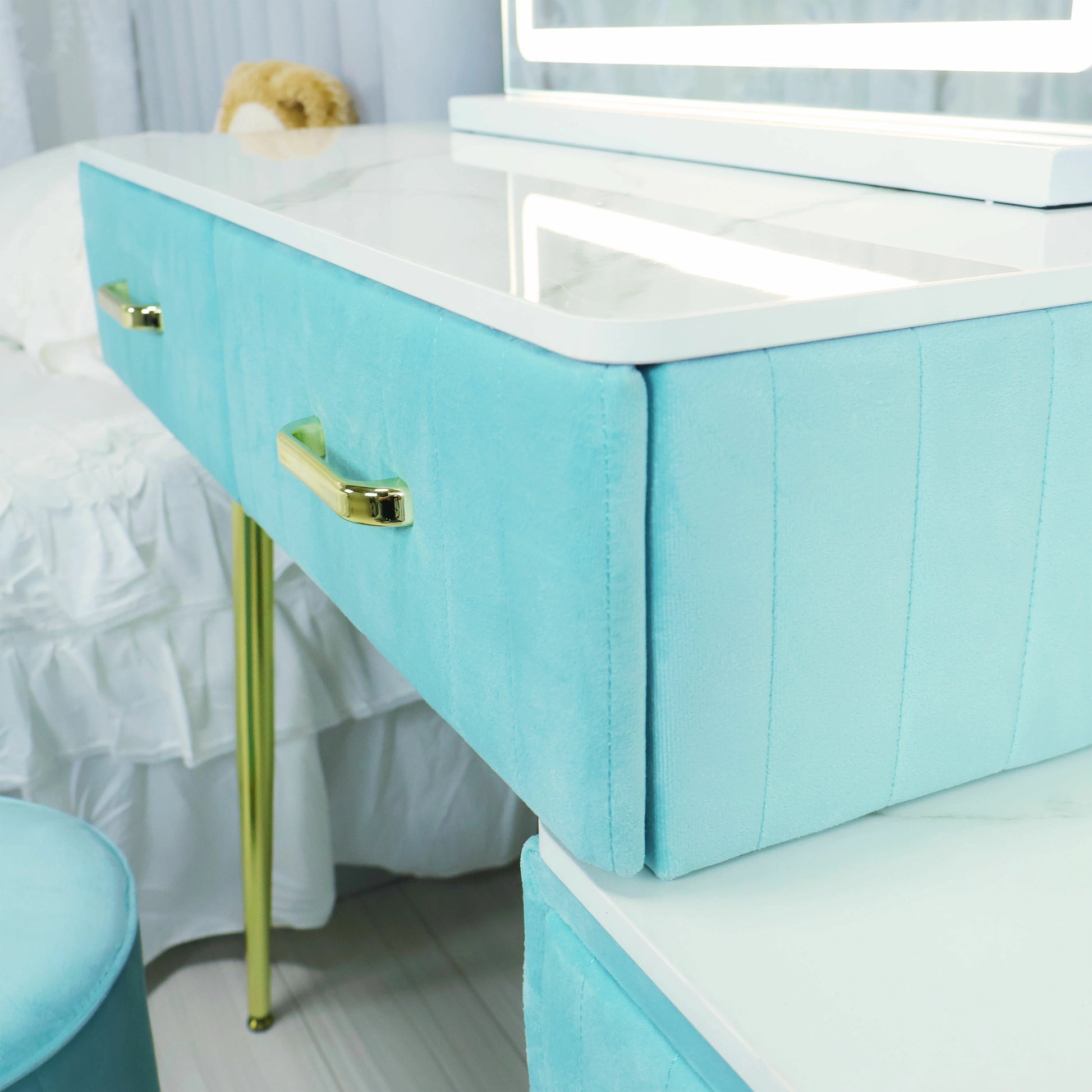 ドレッサー おしゃれ 女優ミラー《自社製品》可愛い デスク 欧風 鏡台 お姫系 ベロア調 テーブル 幅80㎝ 幅60㎝ 幅100㎝ チェスト スツール LEDミラー 寝室 化粧テーブル J108-2