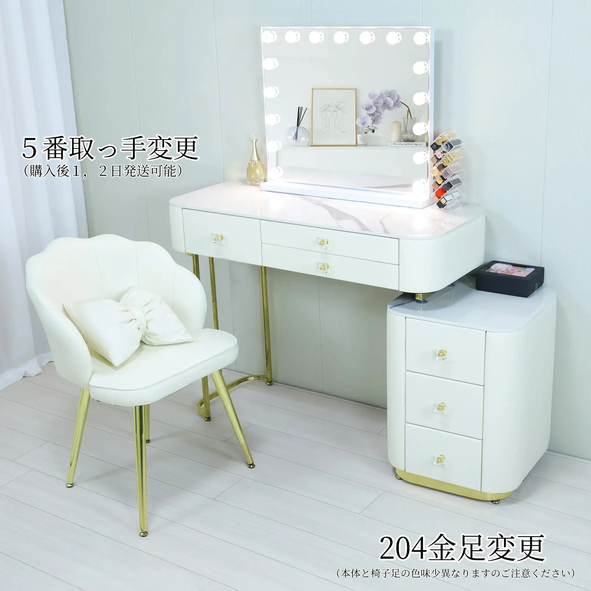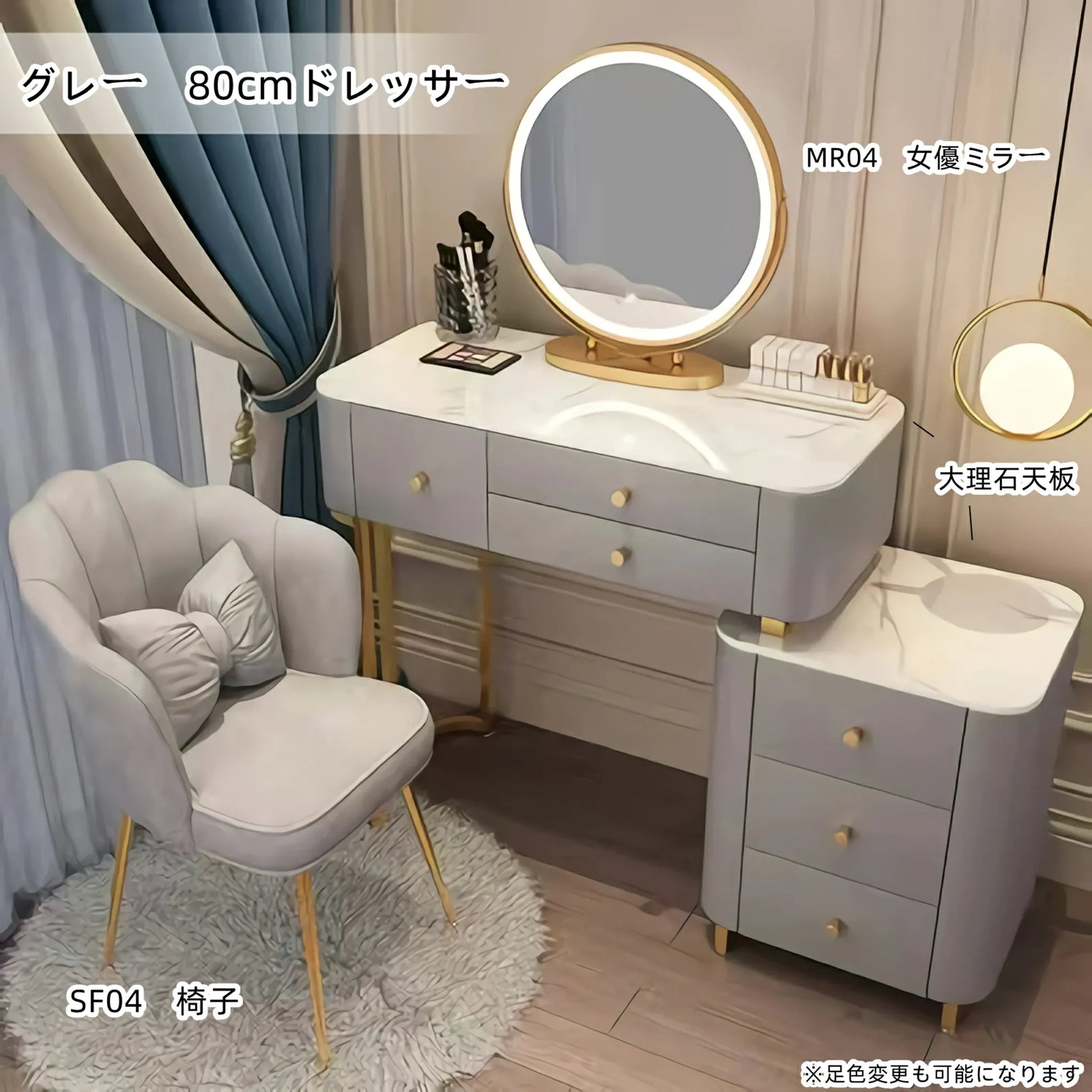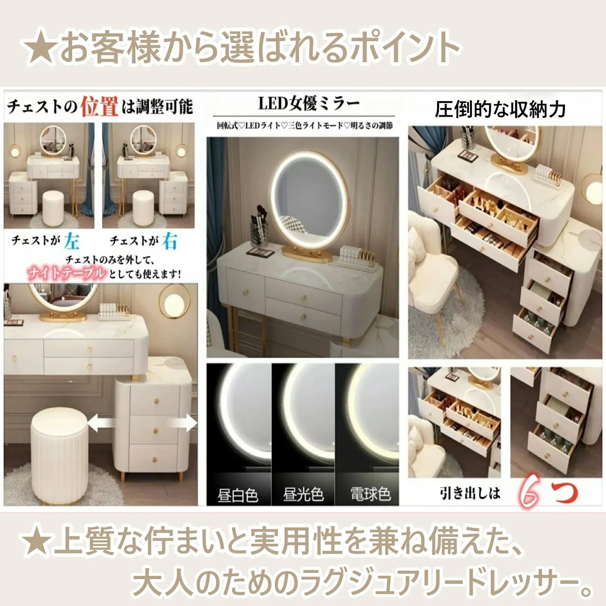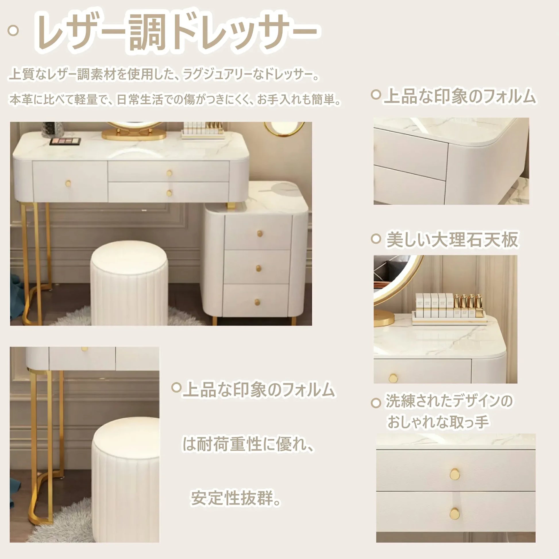 【みなみちゃんねる様紹介】ドレッサー おしゃれ 鏡台 女優ミラー 北欧風 化粧台 メイク台 オリジナル お姫系 大理石天板 カラ レザー調 テーブル幅80cm チェスト LEDミラー スツール 寝室 化粧テーブル 小さい化粧台 コスメ台 収納 ネイルサロン コンパクト j204