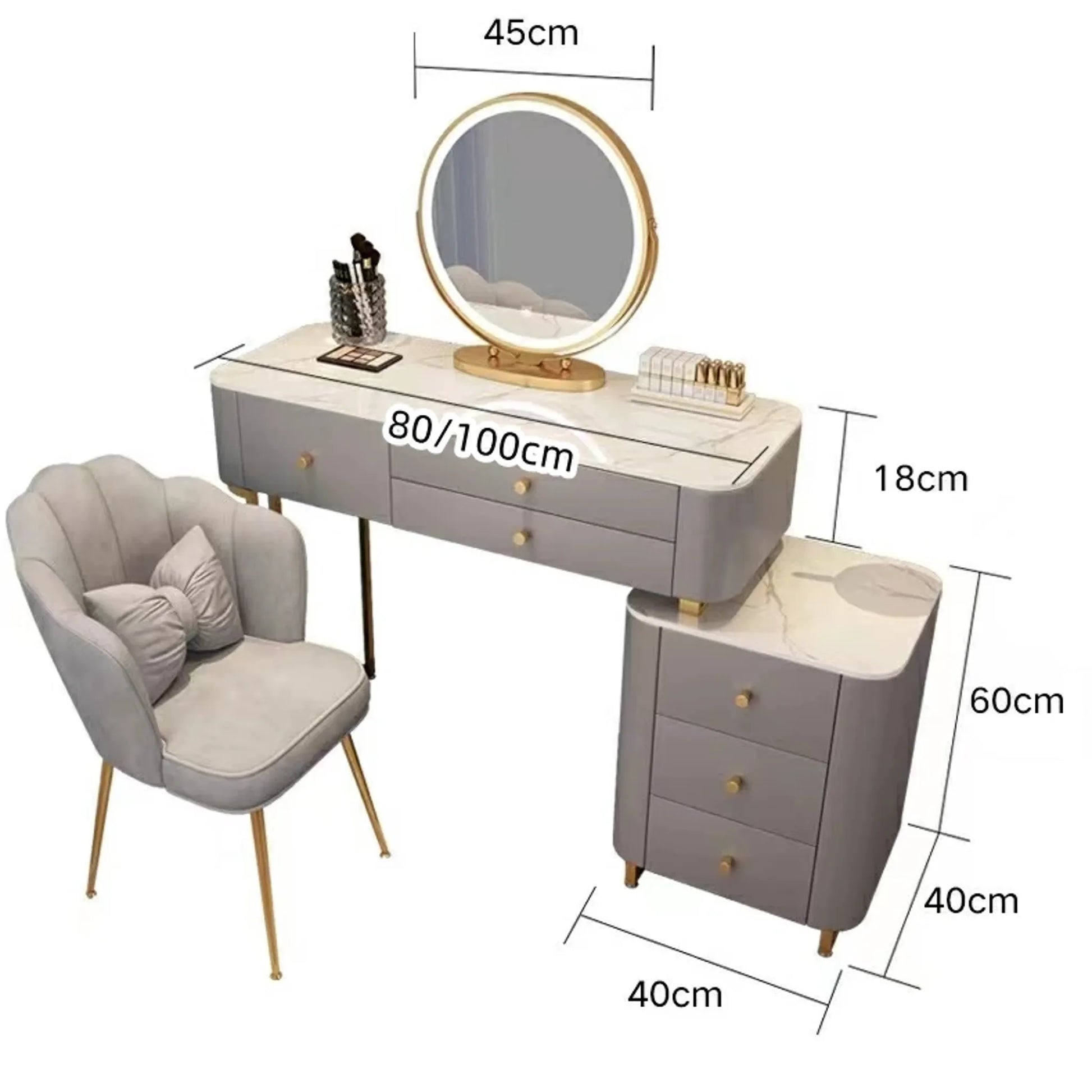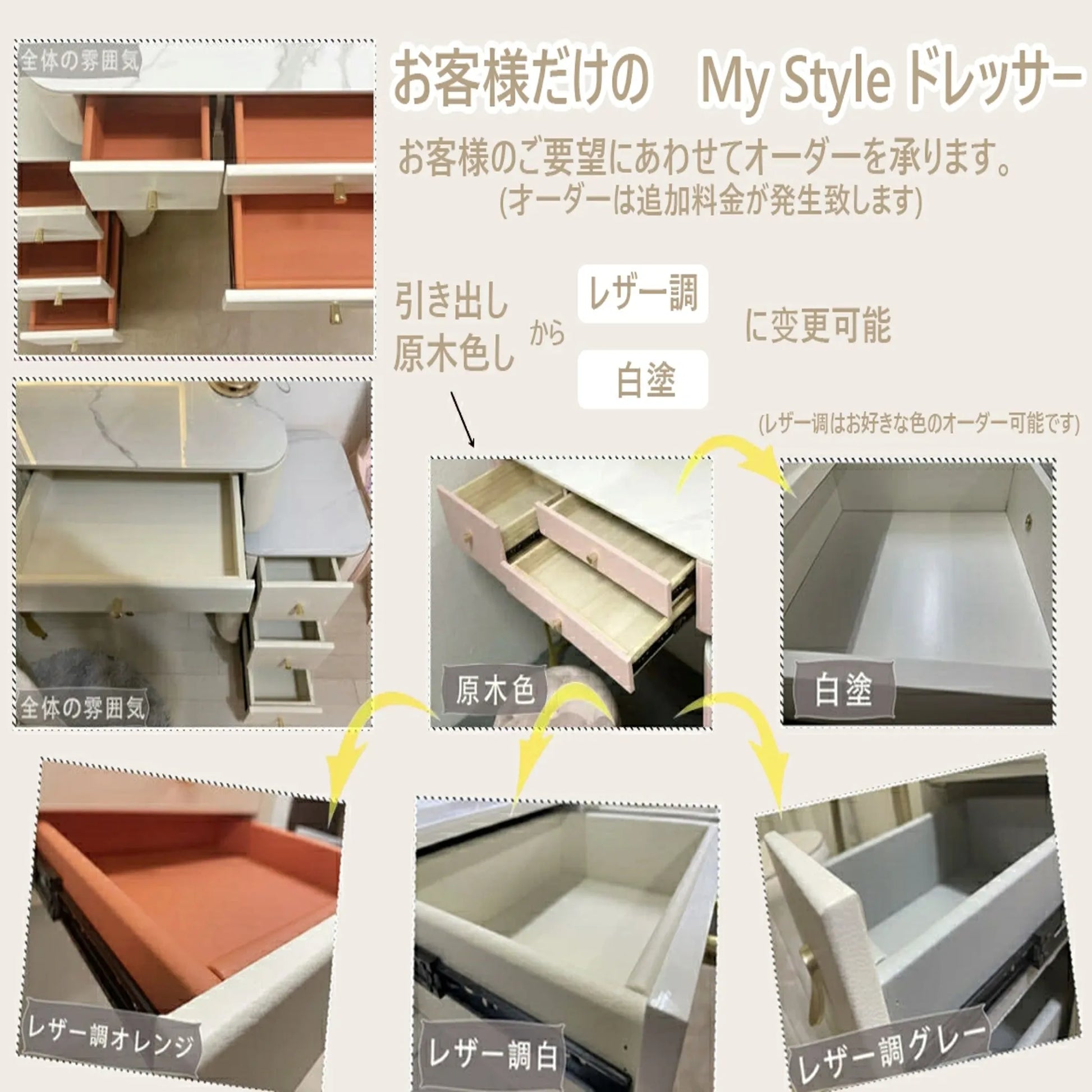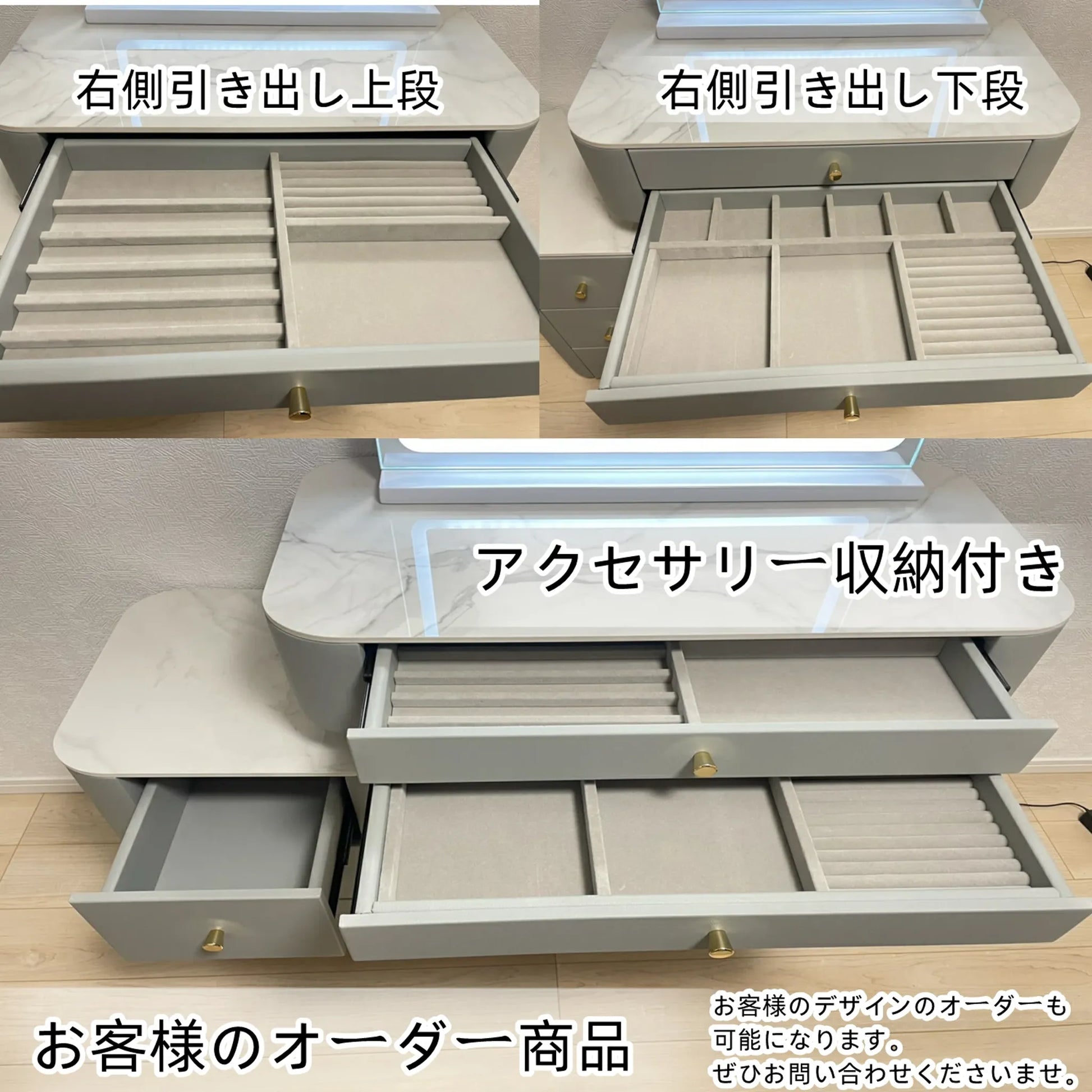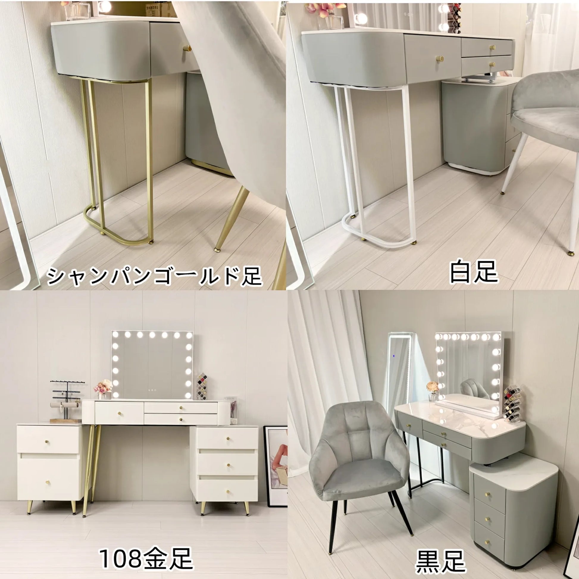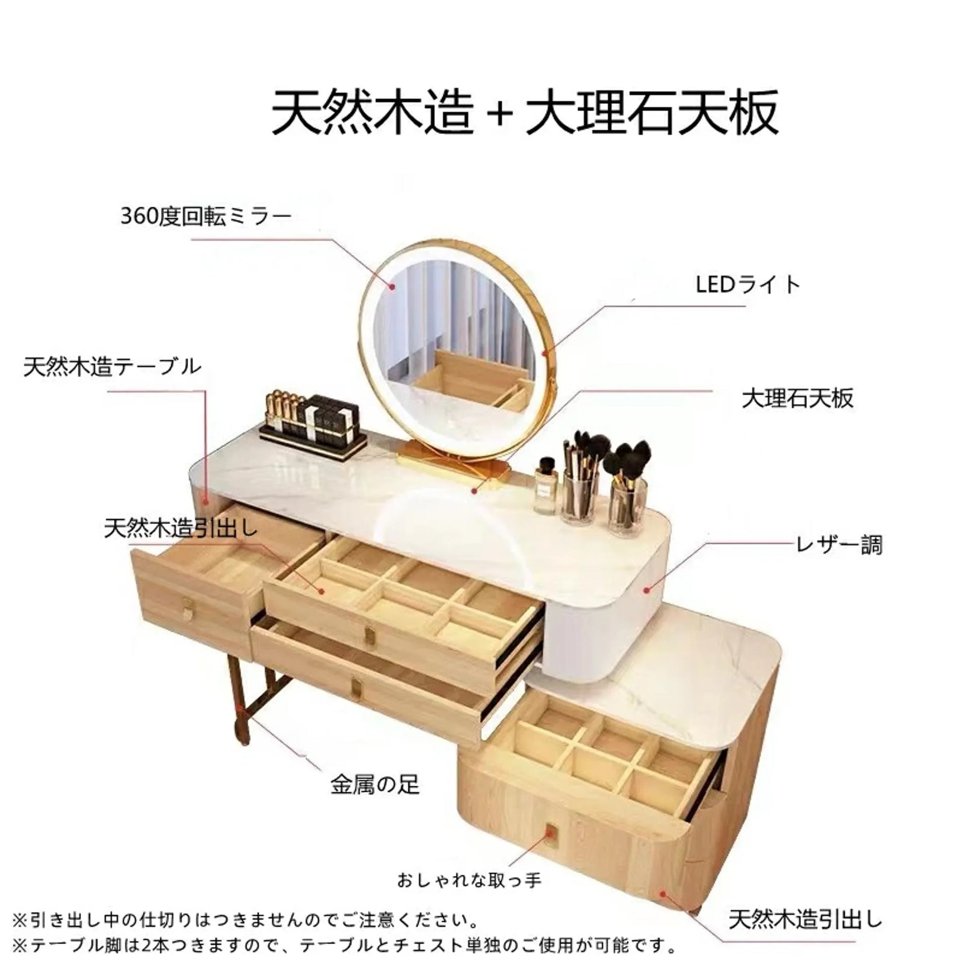 【みなみちゃんねる様紹介】ドレッサー おしゃれ 鏡台 女優ミラー 北欧風 化粧台 メイク台 オリジナル お姫系 大理石天板 カラ レザー調 テーブル幅80cm チェスト LEDミラー スツール 寝室 化粧テーブル 小さい化粧台 コスメ台 収納 ネイルサロン コンパクト j204