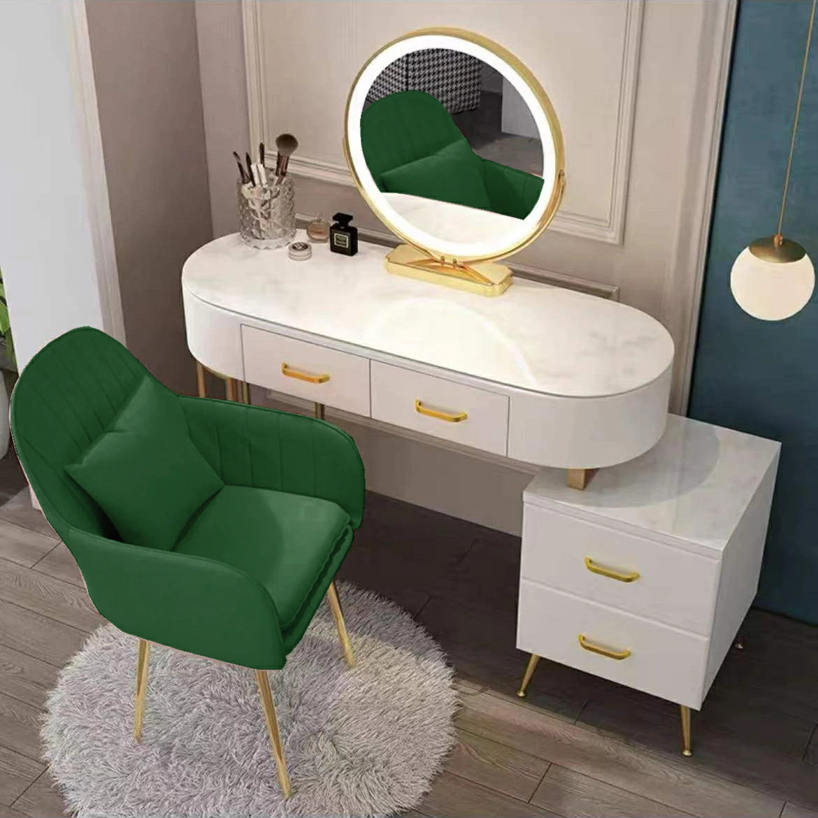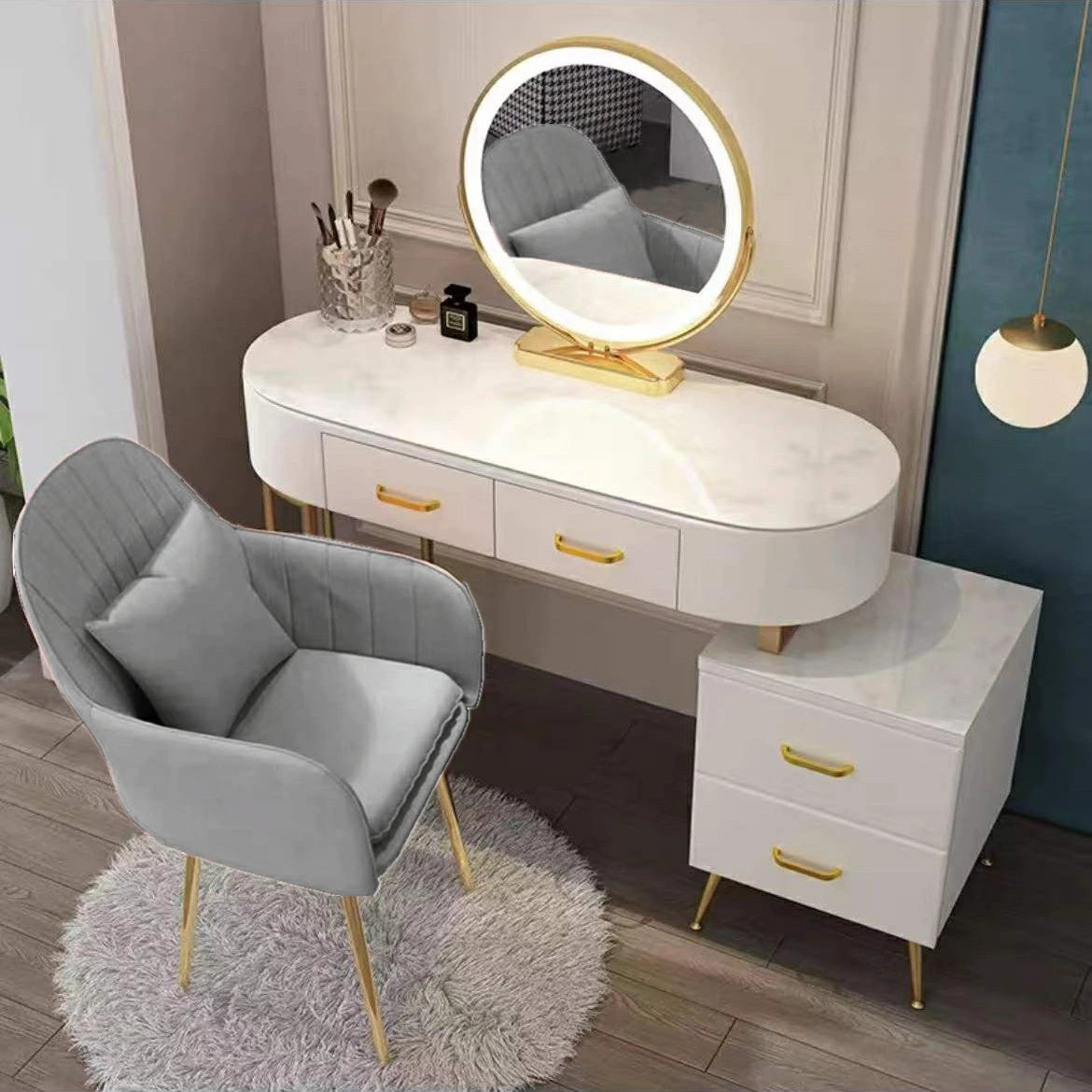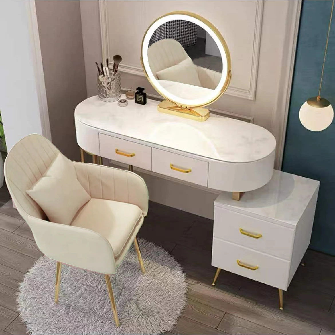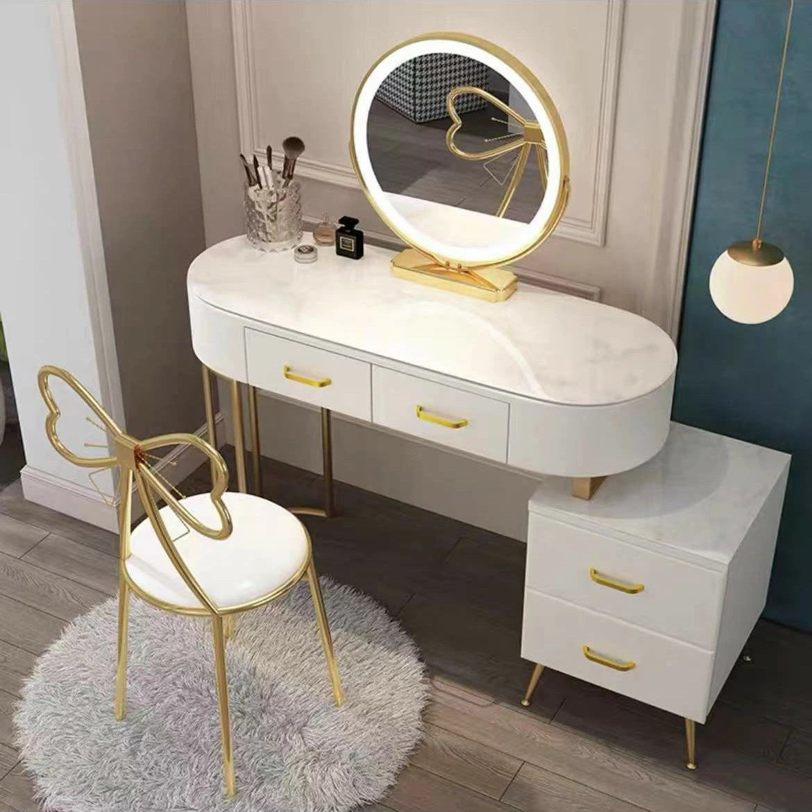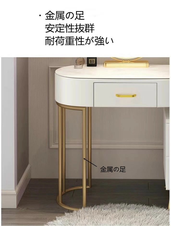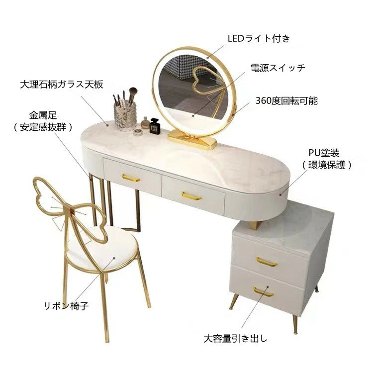 ドレッサー 北欧風 鏡台 ガラス天板 オシャレ コスメ台 化粧台 J201 幅120cmデスク チェスト 椅子付き 回転式LEDミラーMR04 セット  タッチパネルド LEDミラー スツールセット 引き出し ホワイト J201