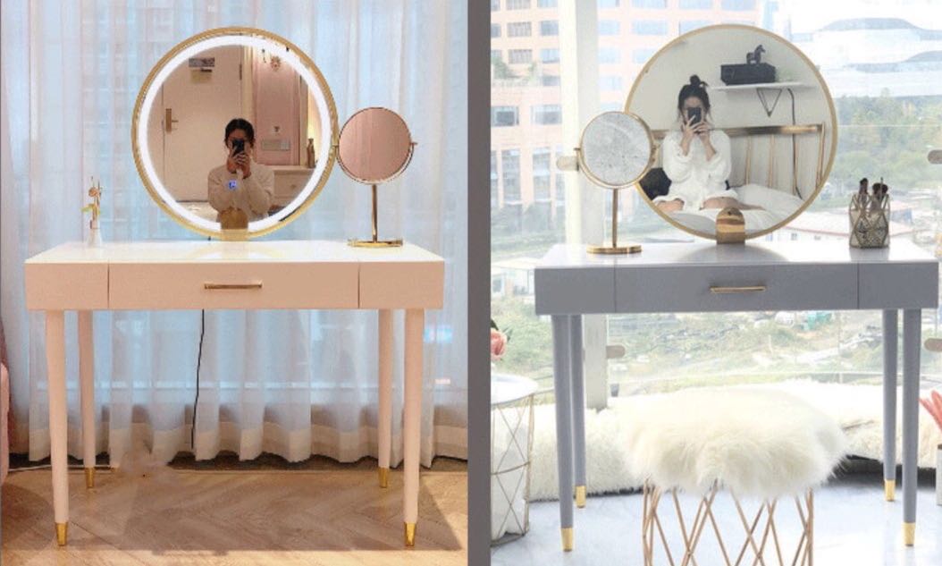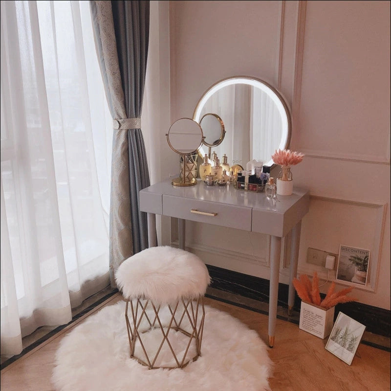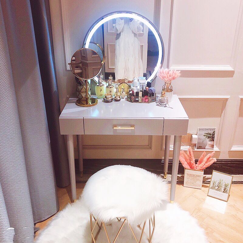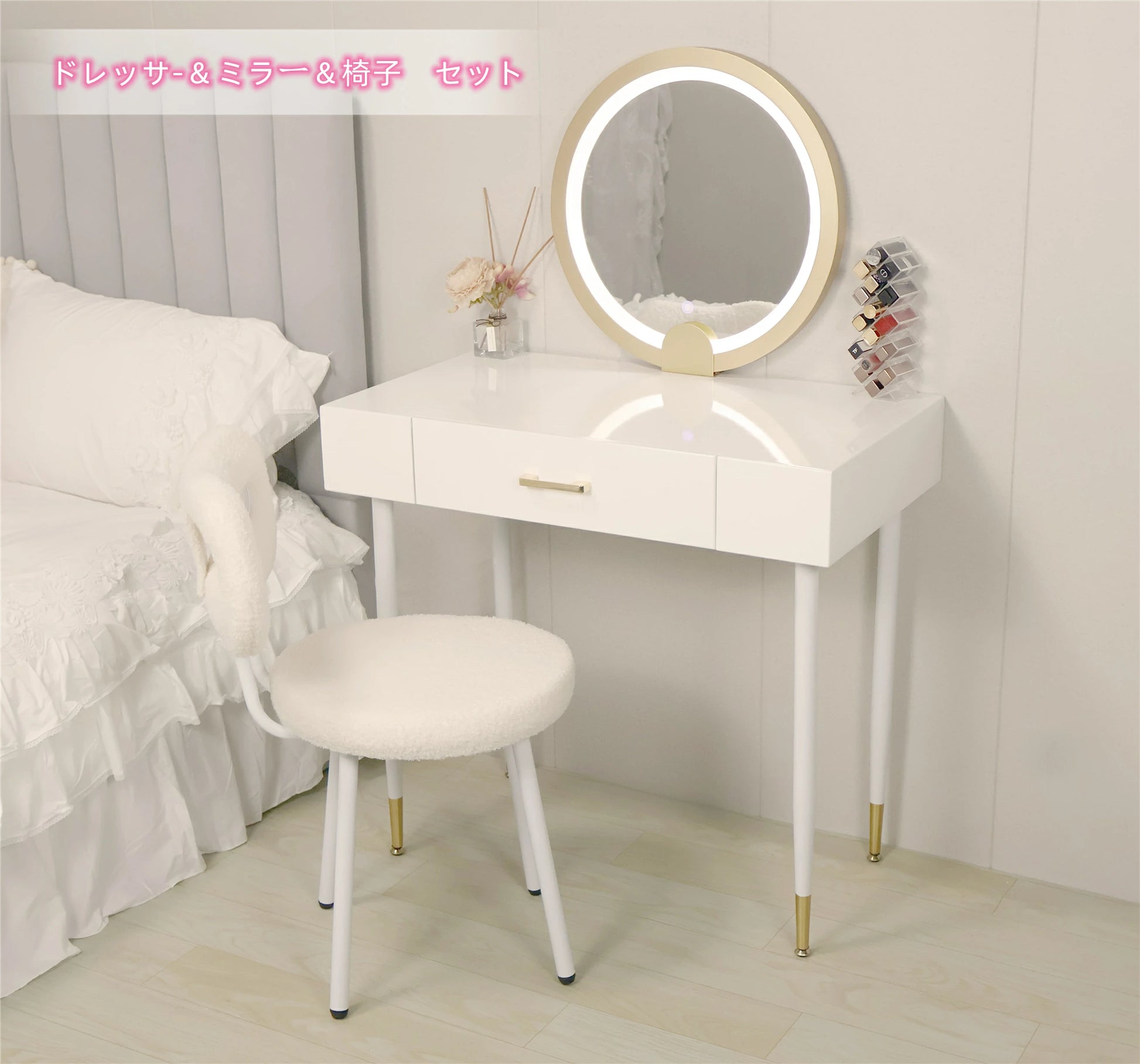 ドレッサー 女優ミラー おしゃれ 椅子 《自社製品》可愛い デスク 北欧風 鏡台 お姫系 LEDミラー ベロア調 オシャレ タッチパネル 姫系 化粧台 コスメ台 LED スツール セット ホワイト グレー 2色 サロン タッチ操作 シンプル 白 J107