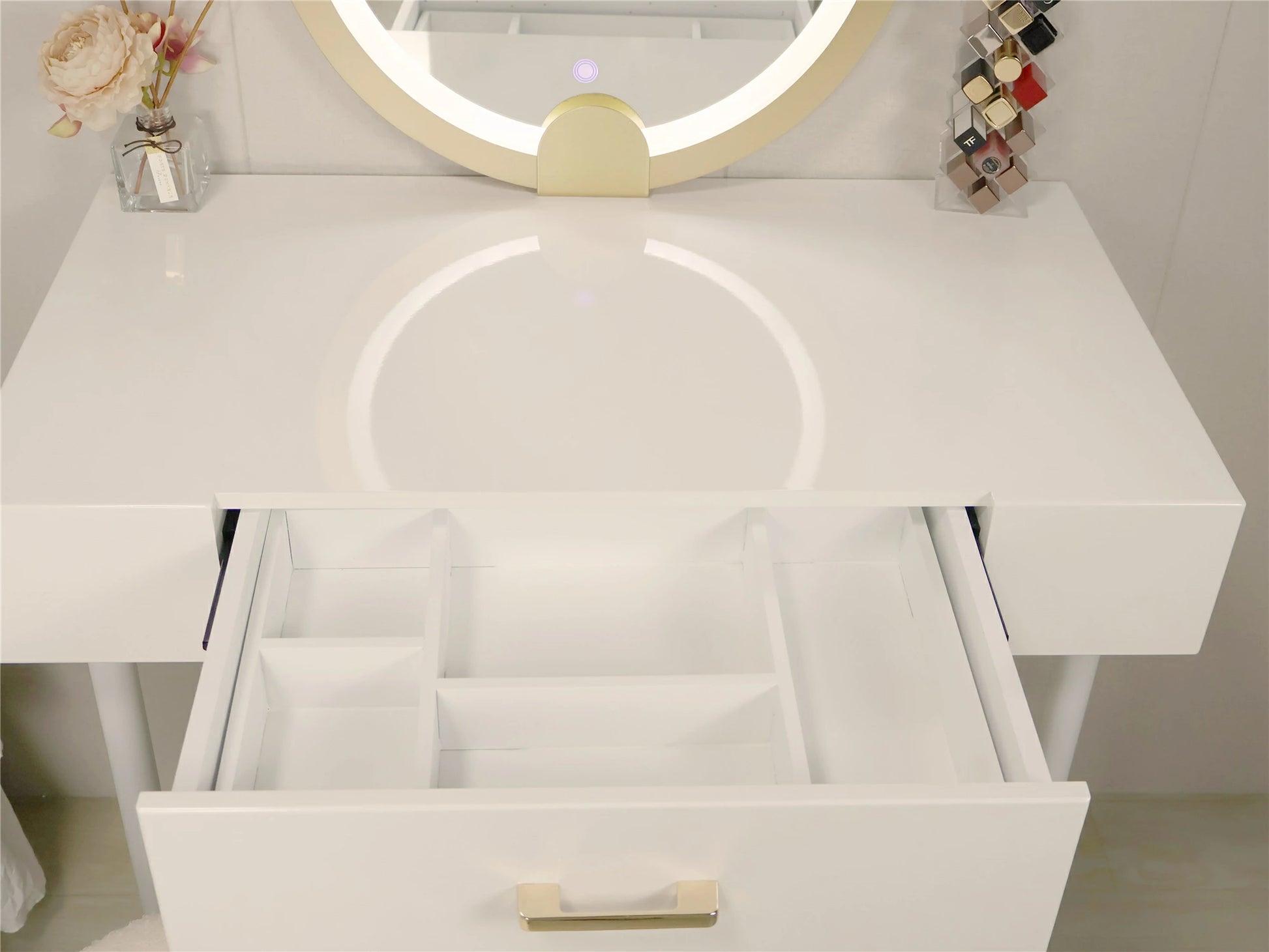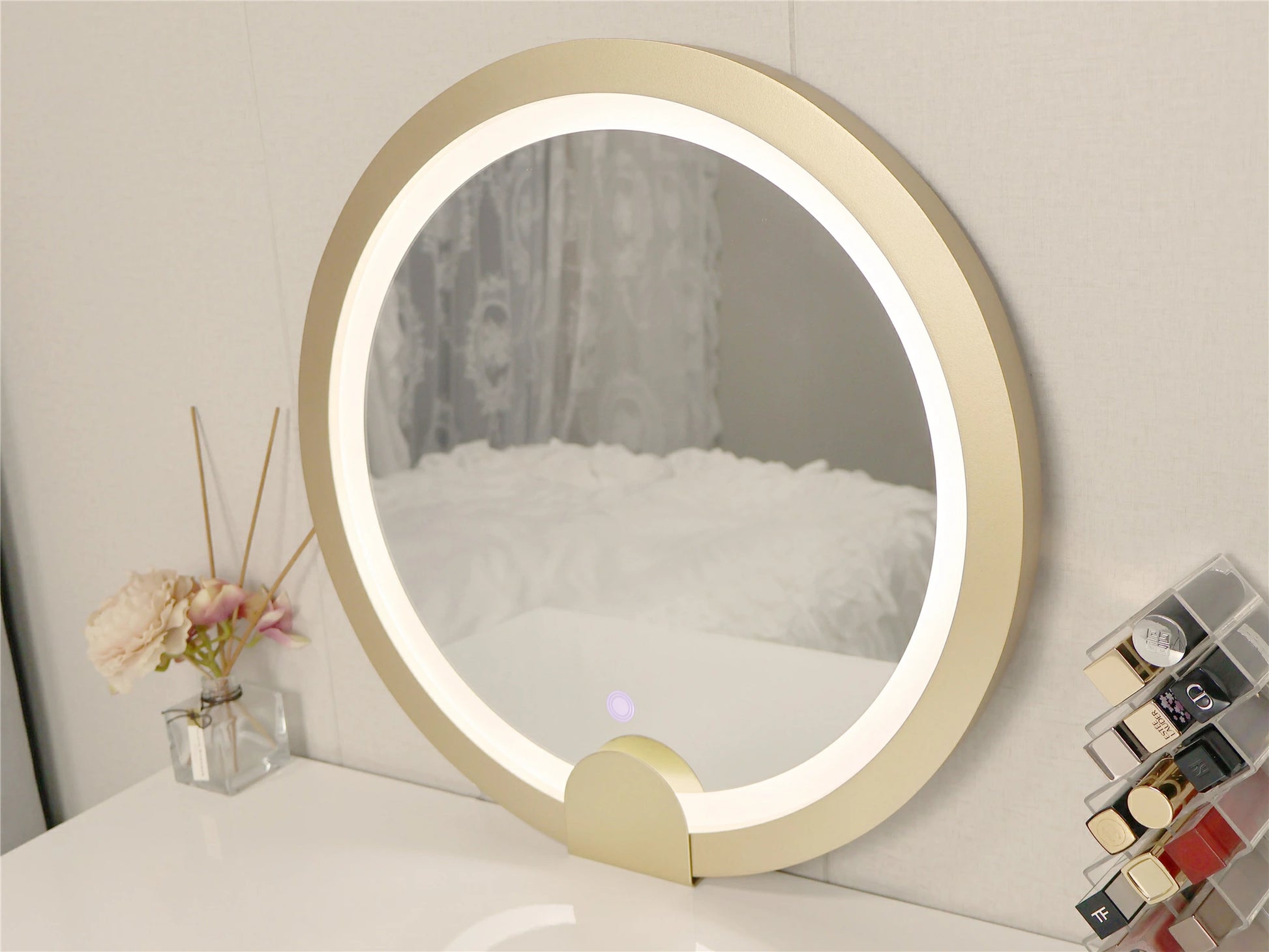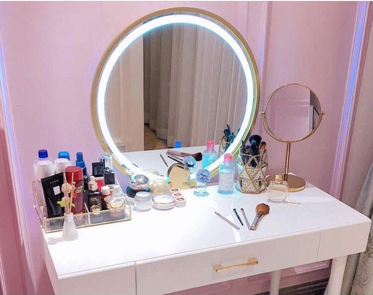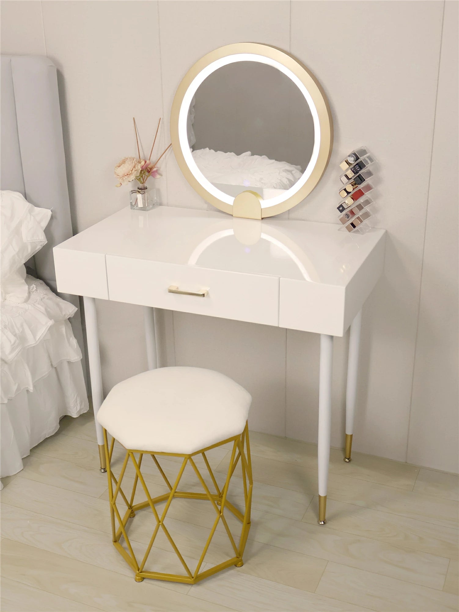 ドレッサー 女優ミラー おしゃれ 椅子 《自社製品》可愛い デスク 北欧風 鏡台 お姫系 LEDミラー ベロア調 オシャレ タッチパネル 姫系 化粧台 コスメ台 LED スツール セット ホワイト グレー 2色 サロン タッチ操作 シンプル 白 J107