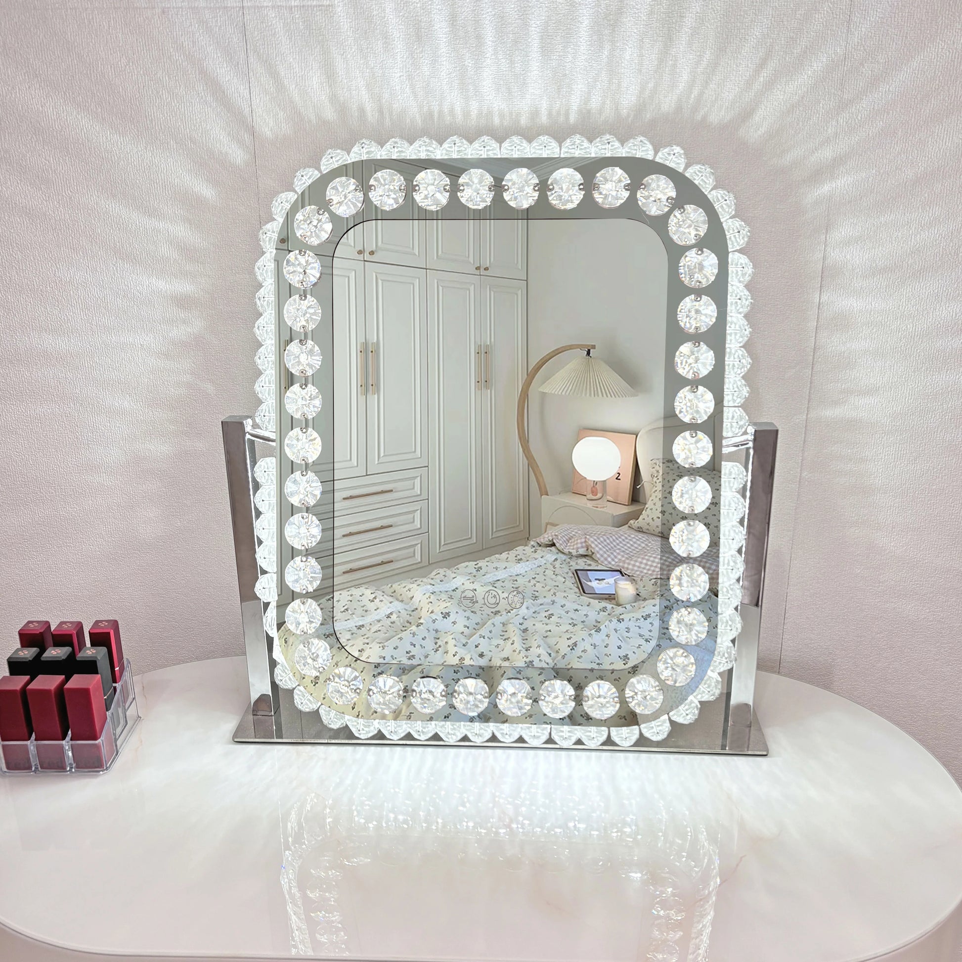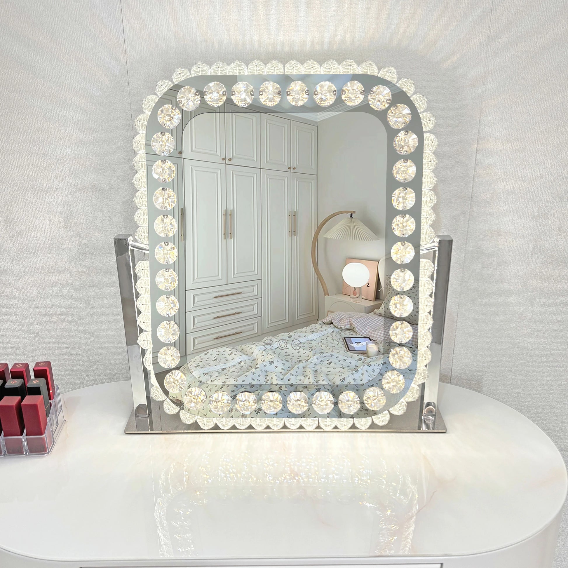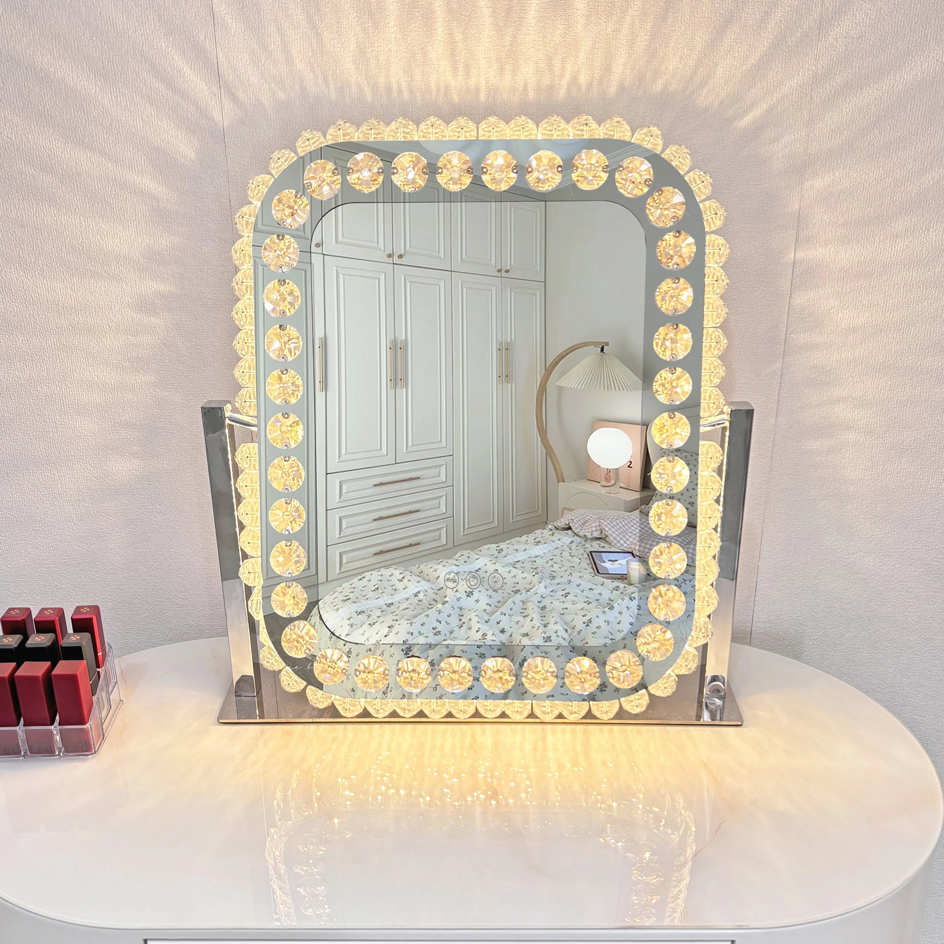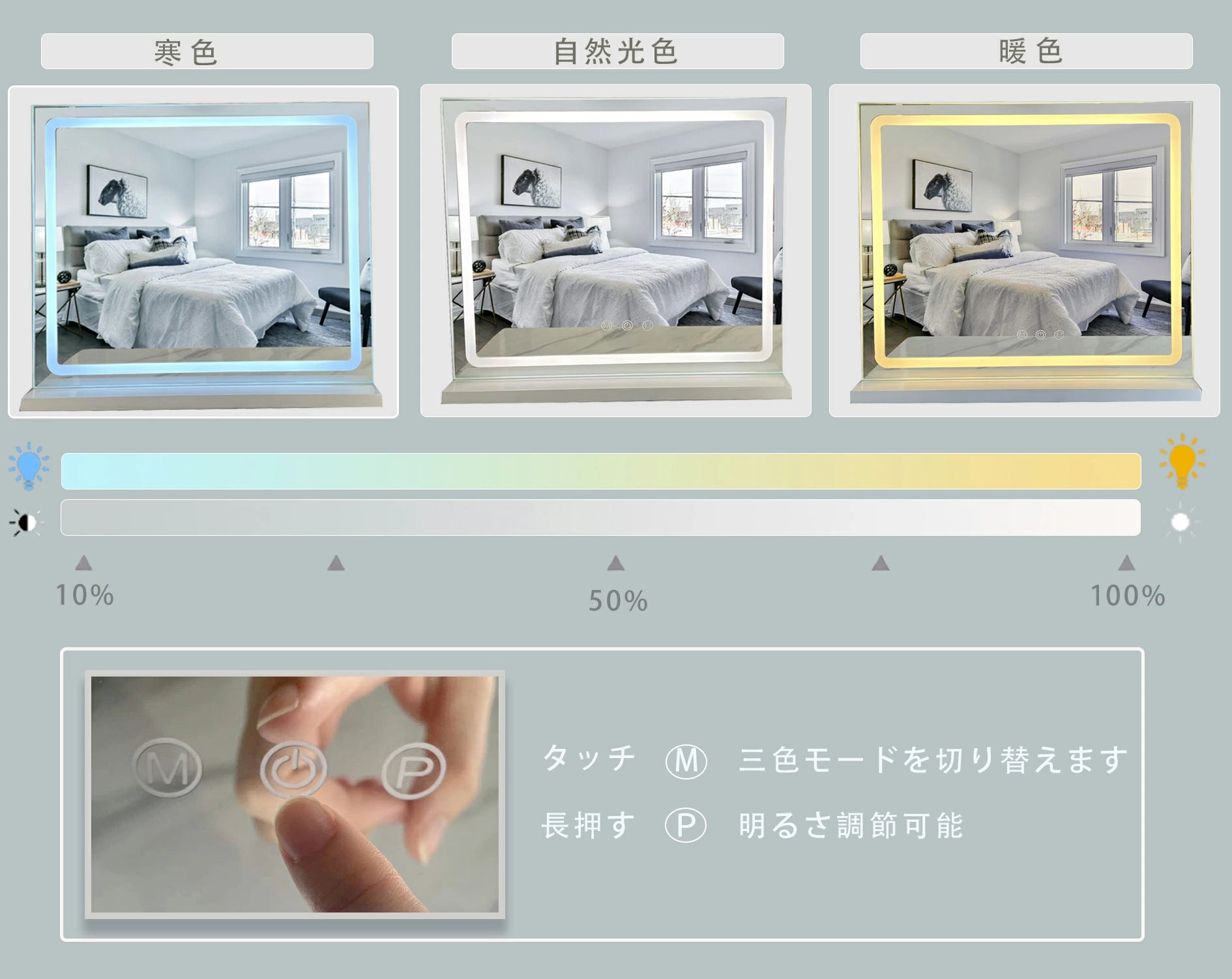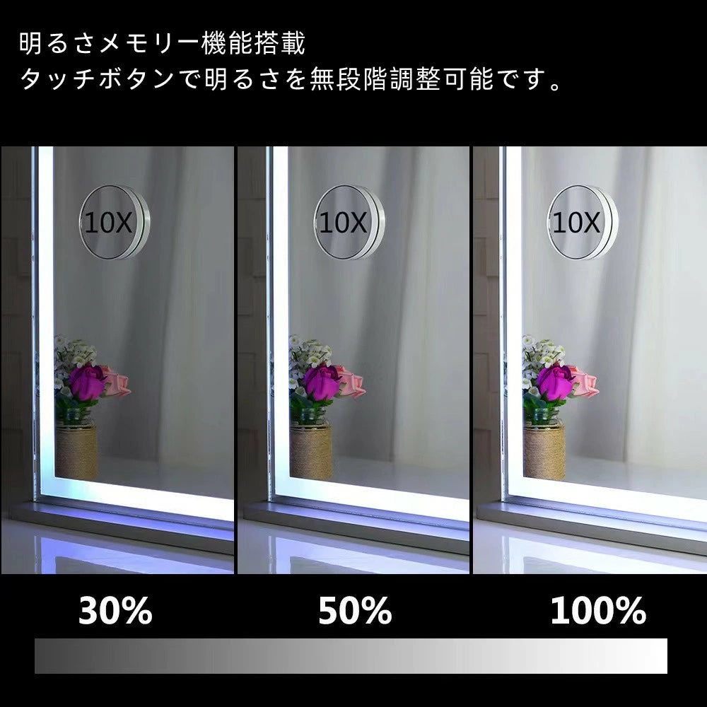 女優ミラー おしゃれ 拡大鏡付 美容室 ドレッサー ミラー 化粧台 卓上ミラー 化粧ミラー 化粧鏡 壁掛け ハリウッドミラー サロン 卓上 大型化粧鏡 3色照明モード 明るさ調節可能 LEDバックライト MR06