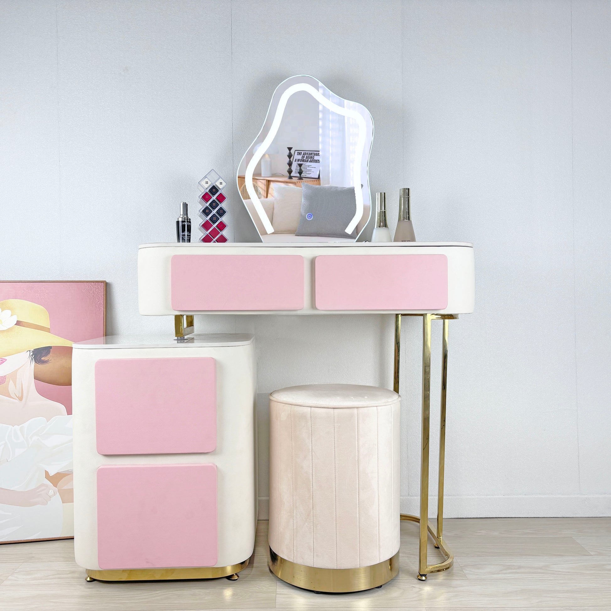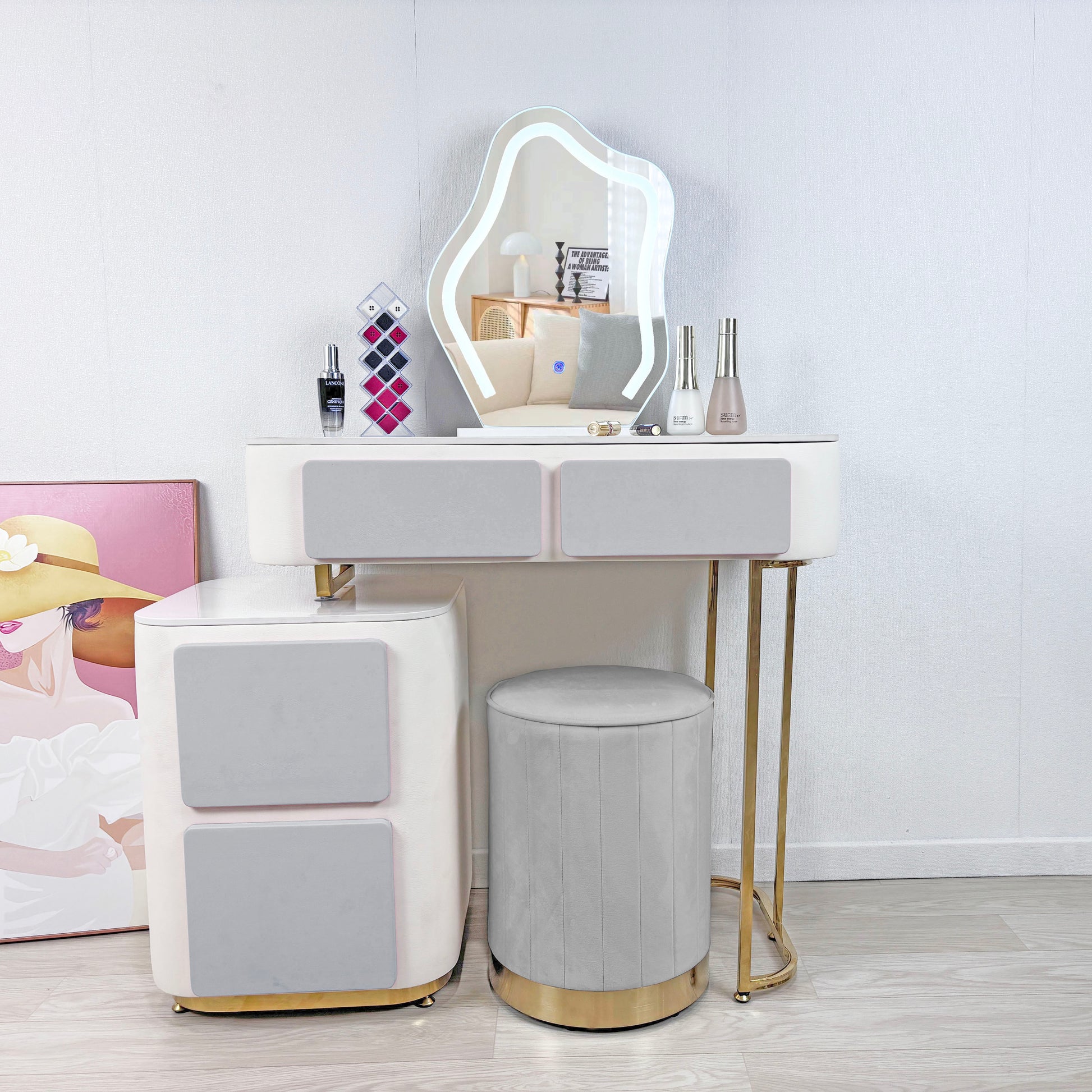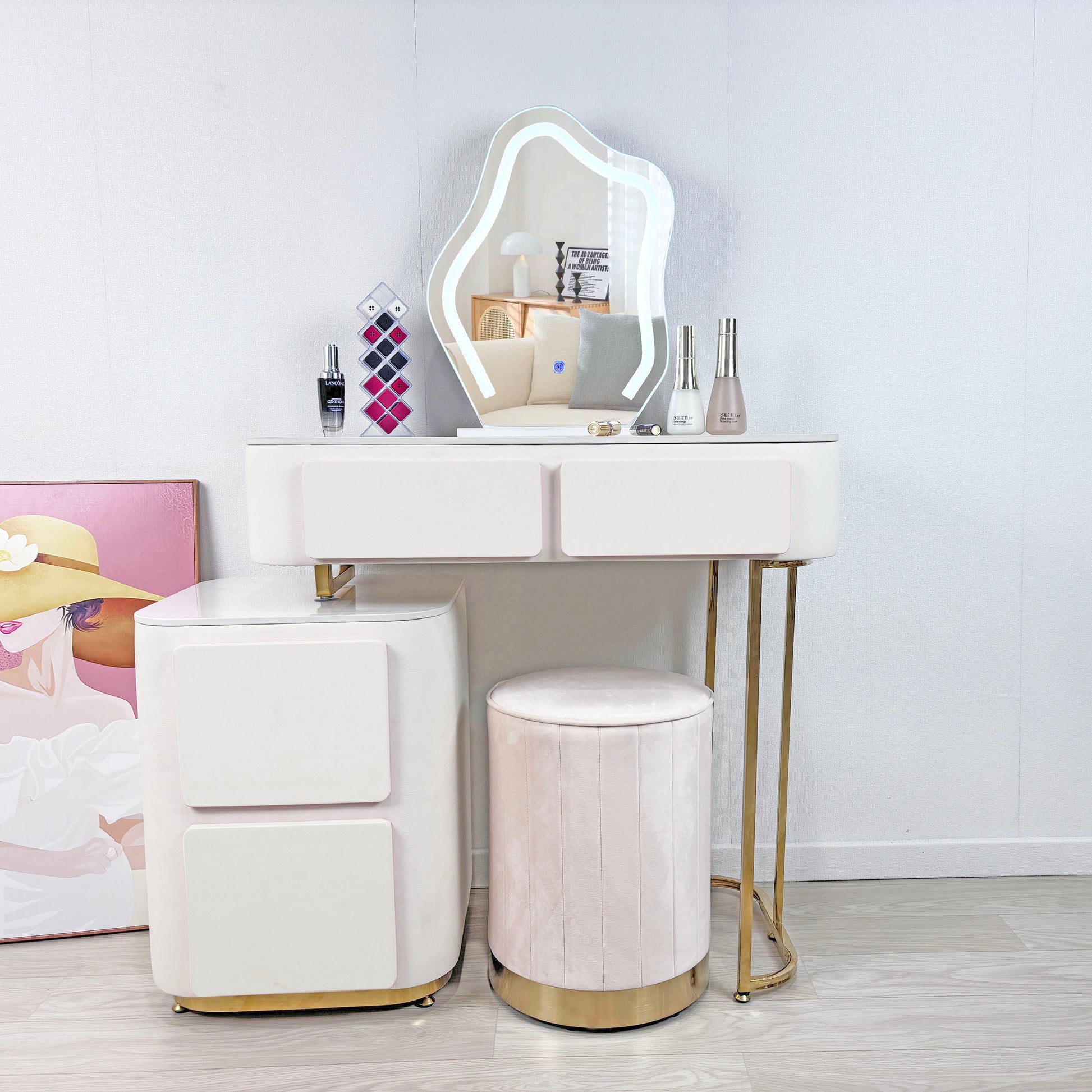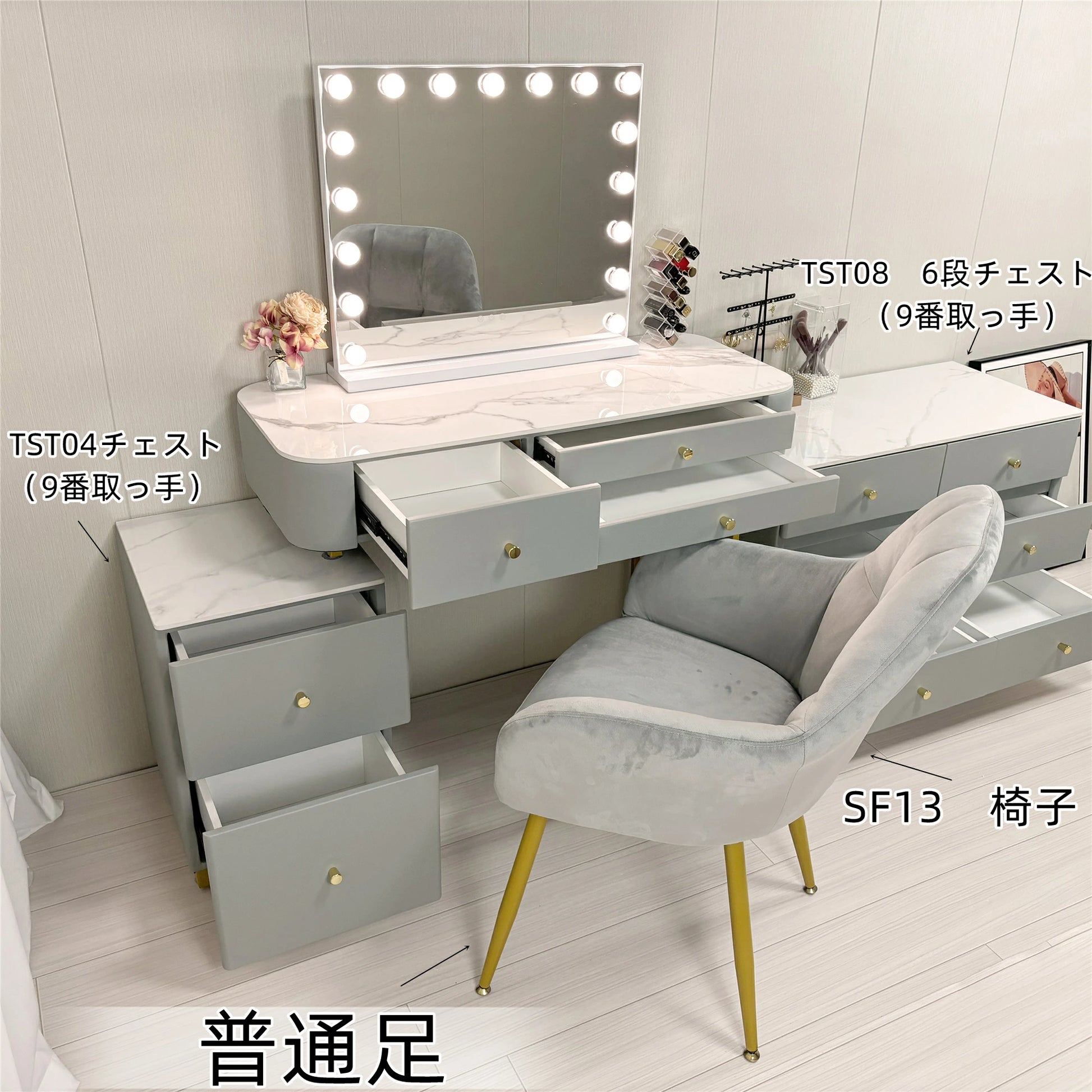 化粧台 ドレッサー おしゃれ 女優ミラー 北欧風 鏡台 自社製品 お姫系 大理石天板 カラ レザー調 テーブル幅100cm チェスト付き LEDミラー スツール サイドテーブルあり 寝室 化粧テーブル 小さい化粧台 コスメ台 収納 ネイルサロン J215