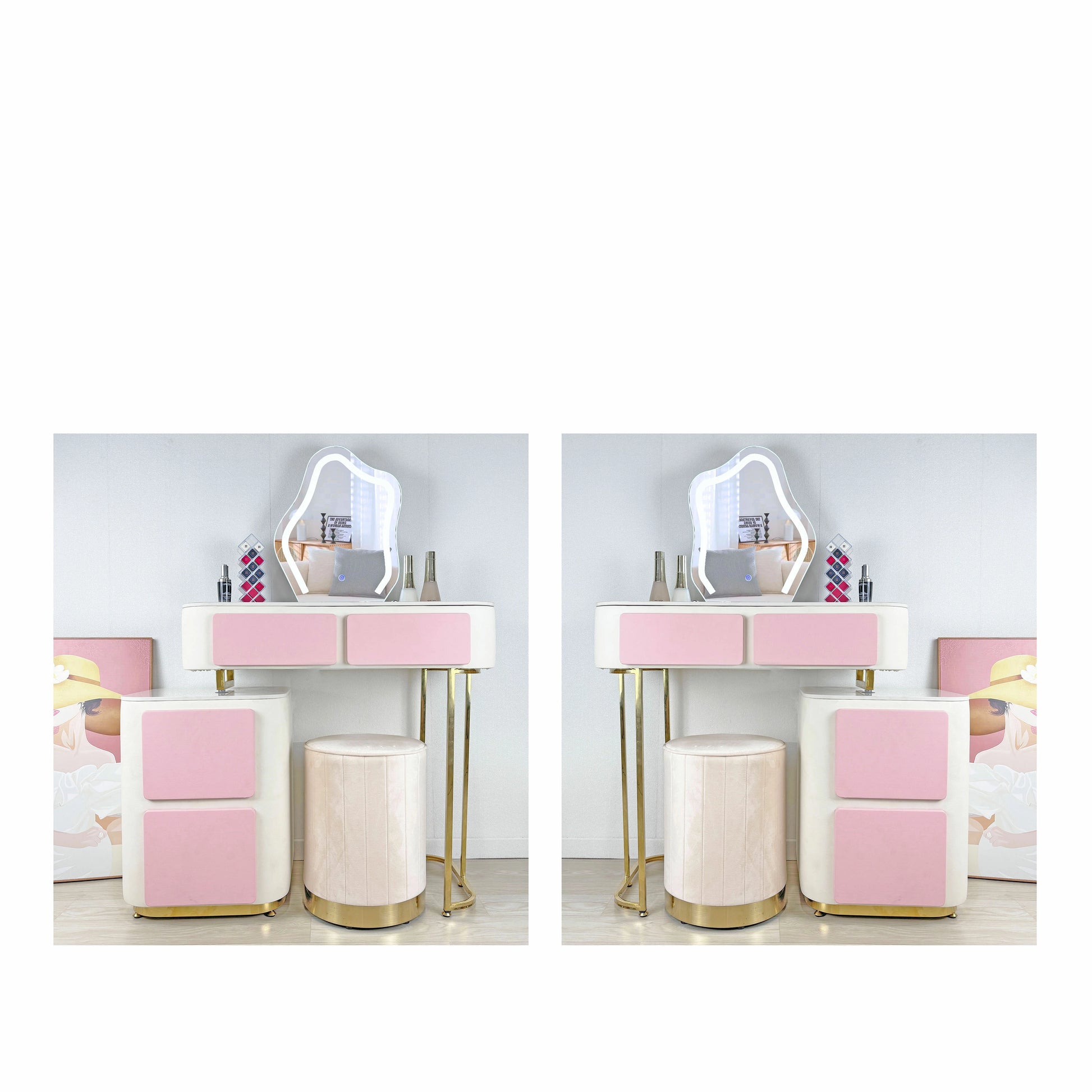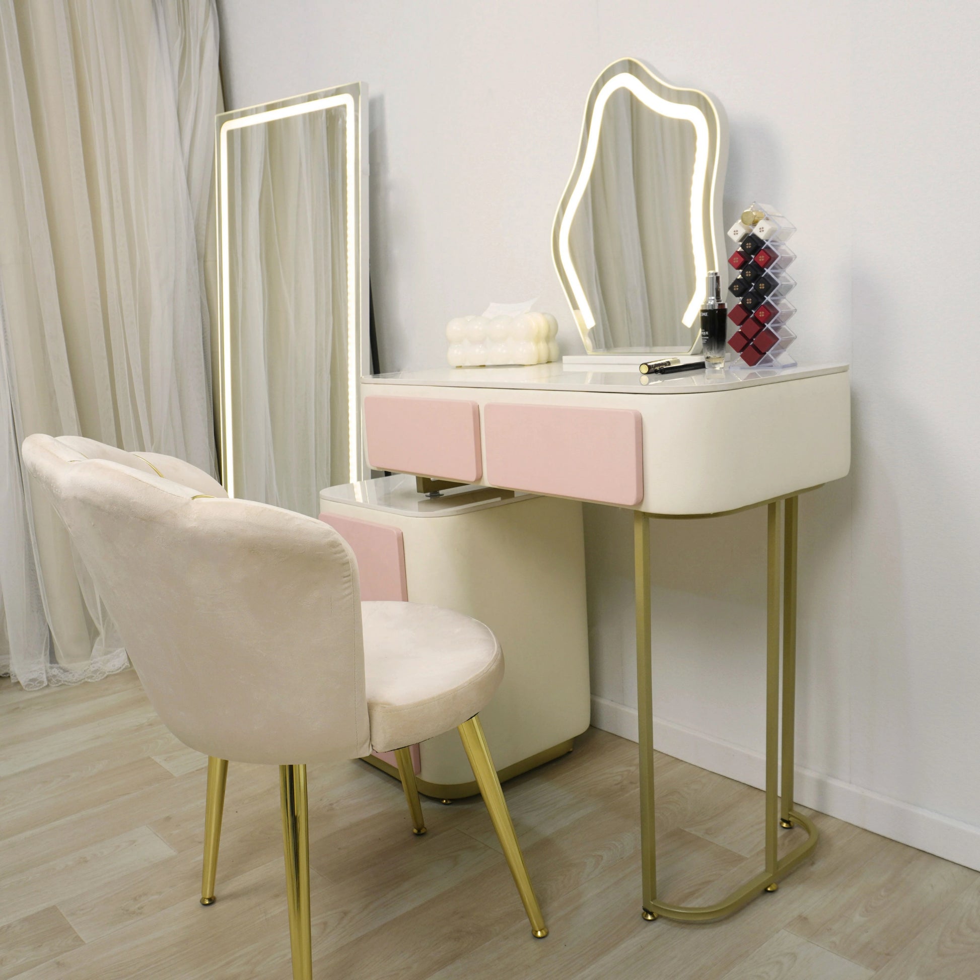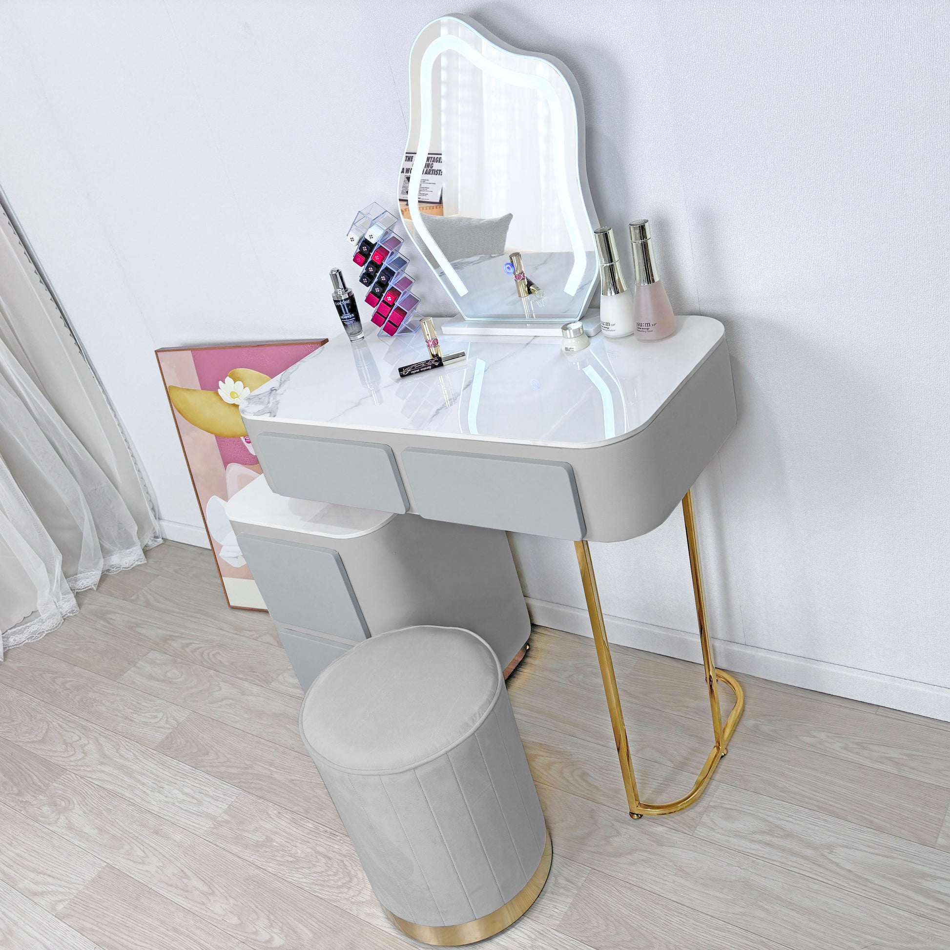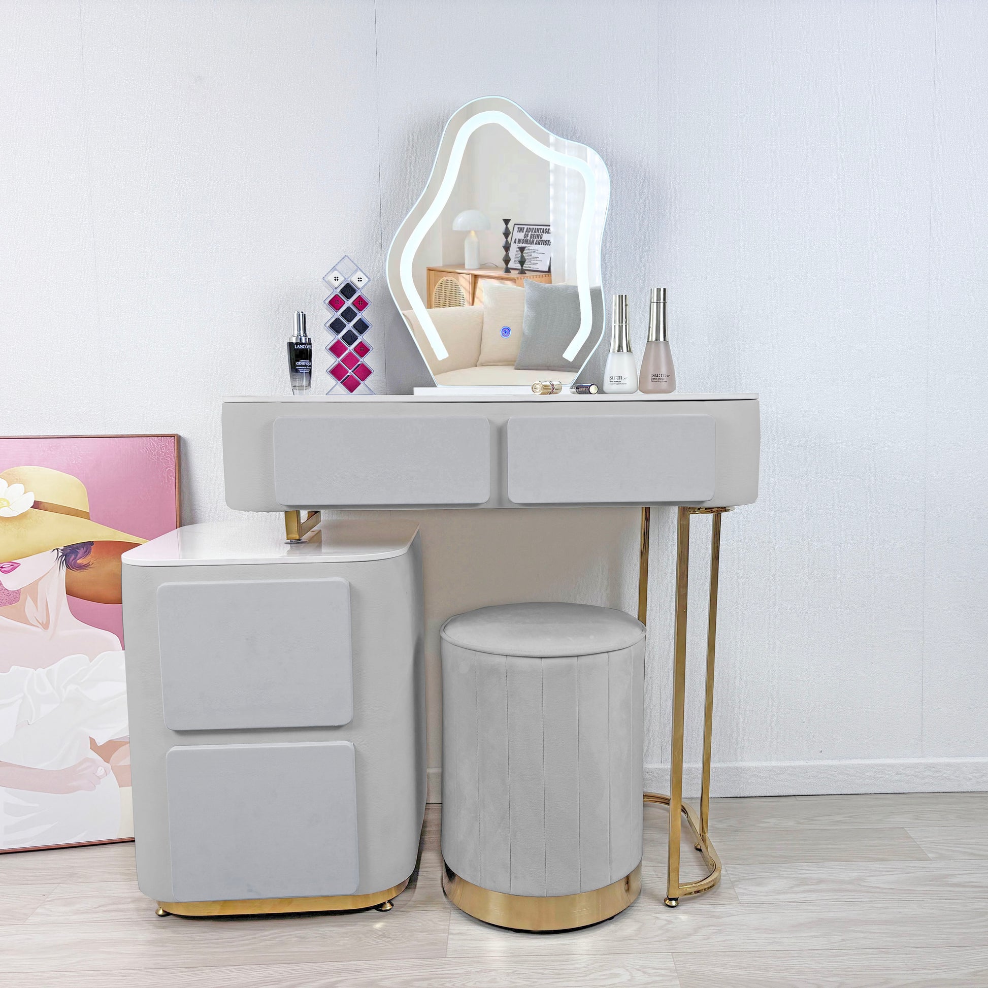 化粧台 ドレッサー おしゃれ 女優ミラー 北欧風 鏡台 自社製品 お姫系 大理石天板 カラ レザー調 テーブル幅100cm チェスト付き LEDミラー スツール サイドテーブルあり 寝室 化粧テーブル 小さい化粧台 コスメ台 収納 ネイルサロン J215