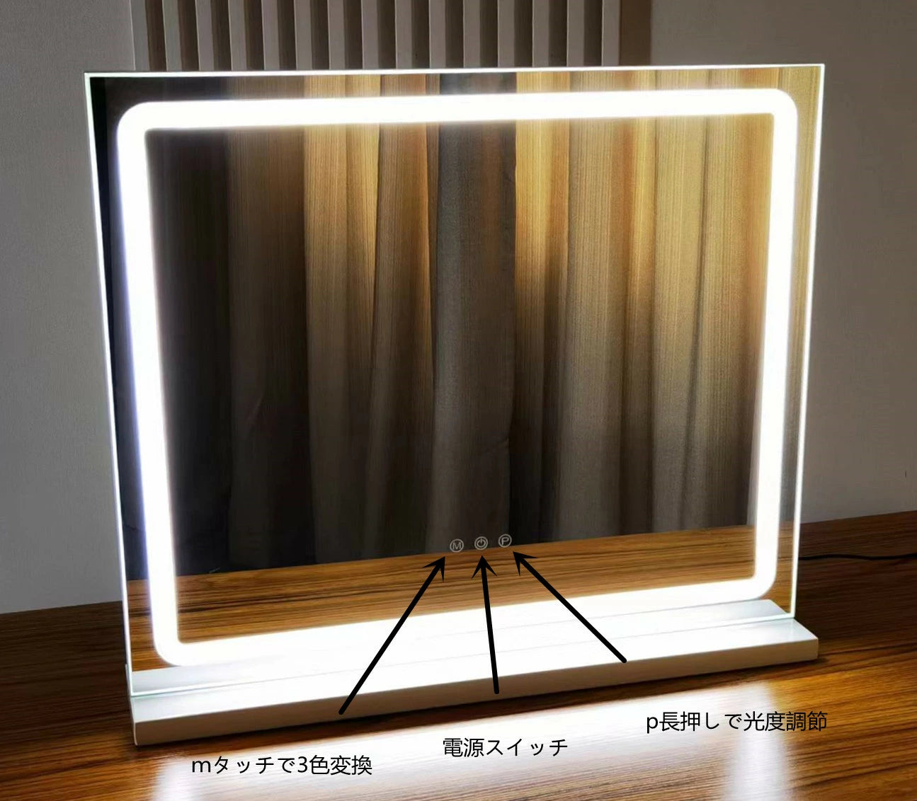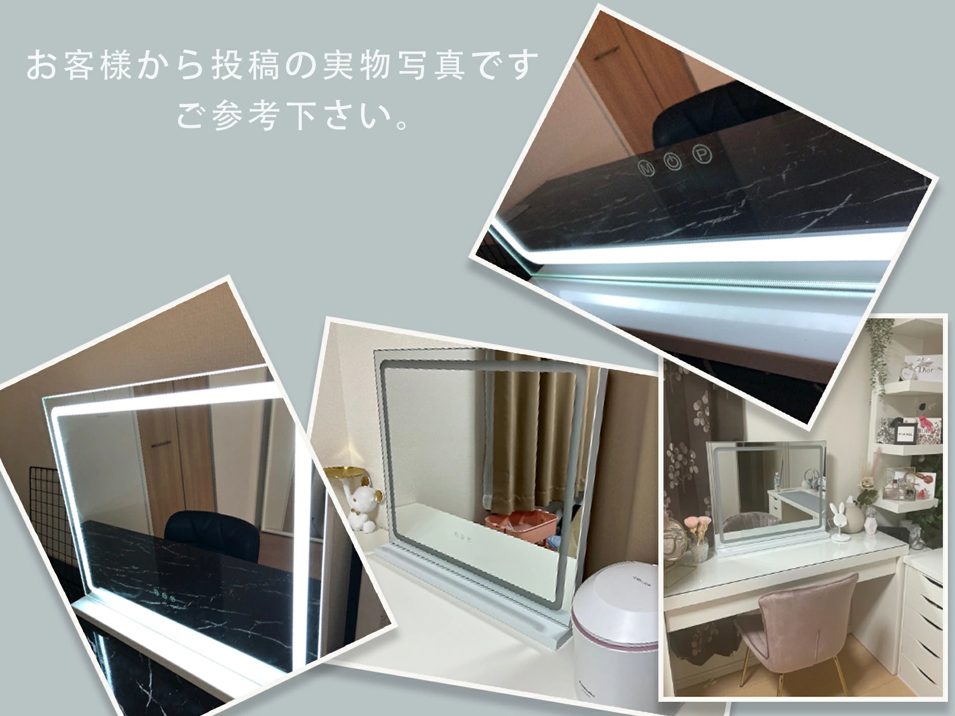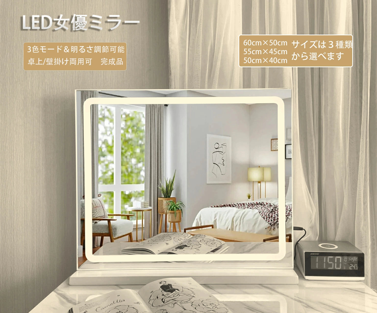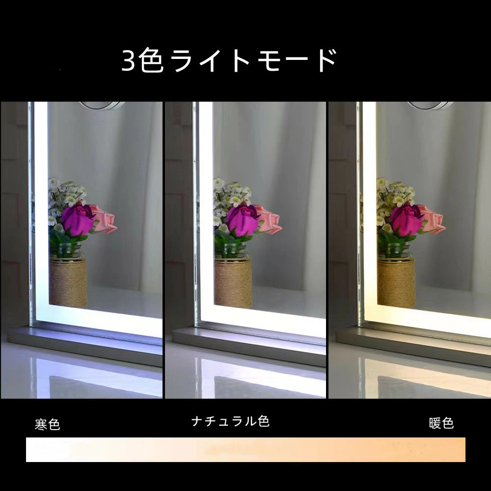 化粧鏡 女優ミラー 卓上用 / 壁掛け ハリウッドミラー 大型化粧鏡 3色照明モード 明るさ調節可能 LEDバックライト付き 拡大鏡付き MR02