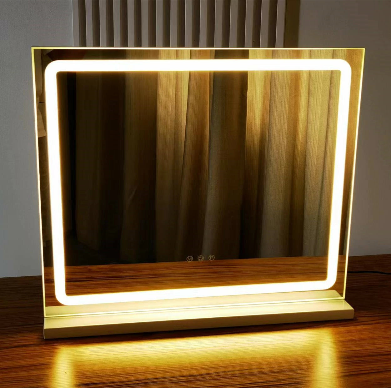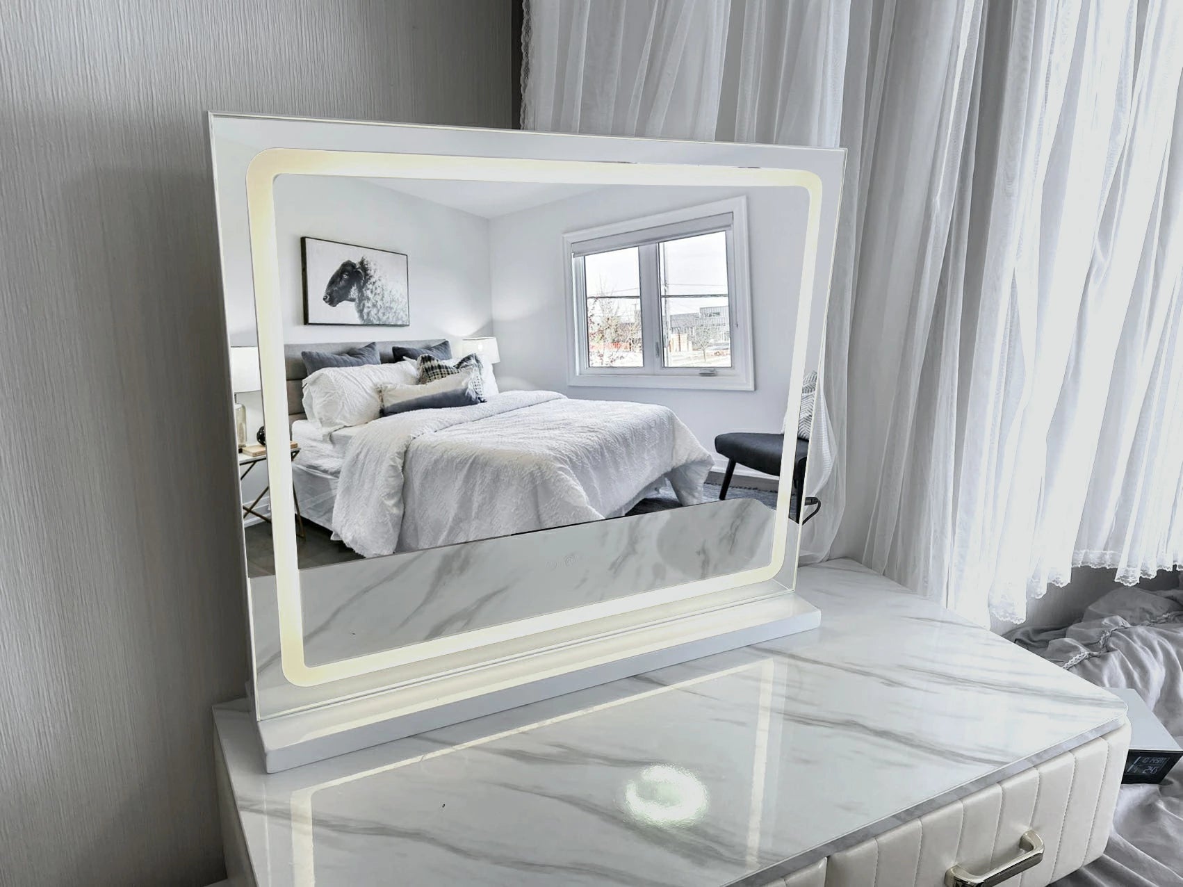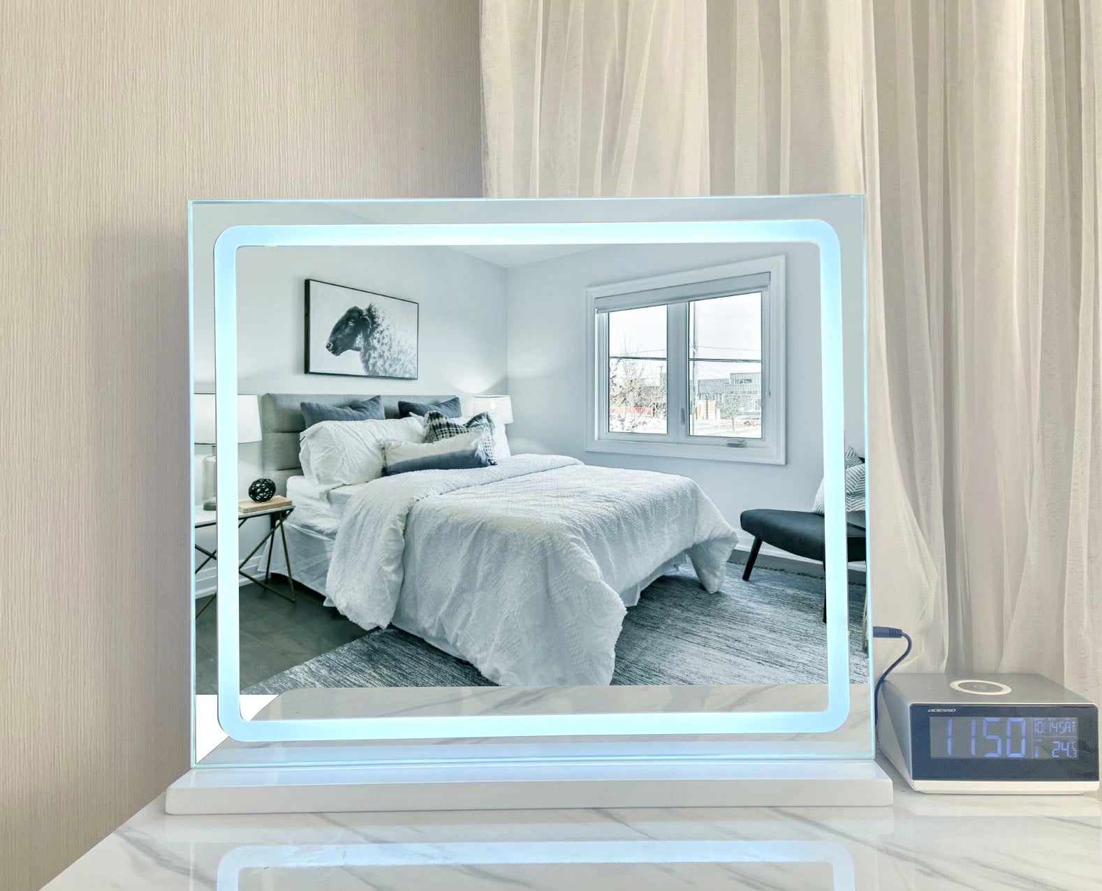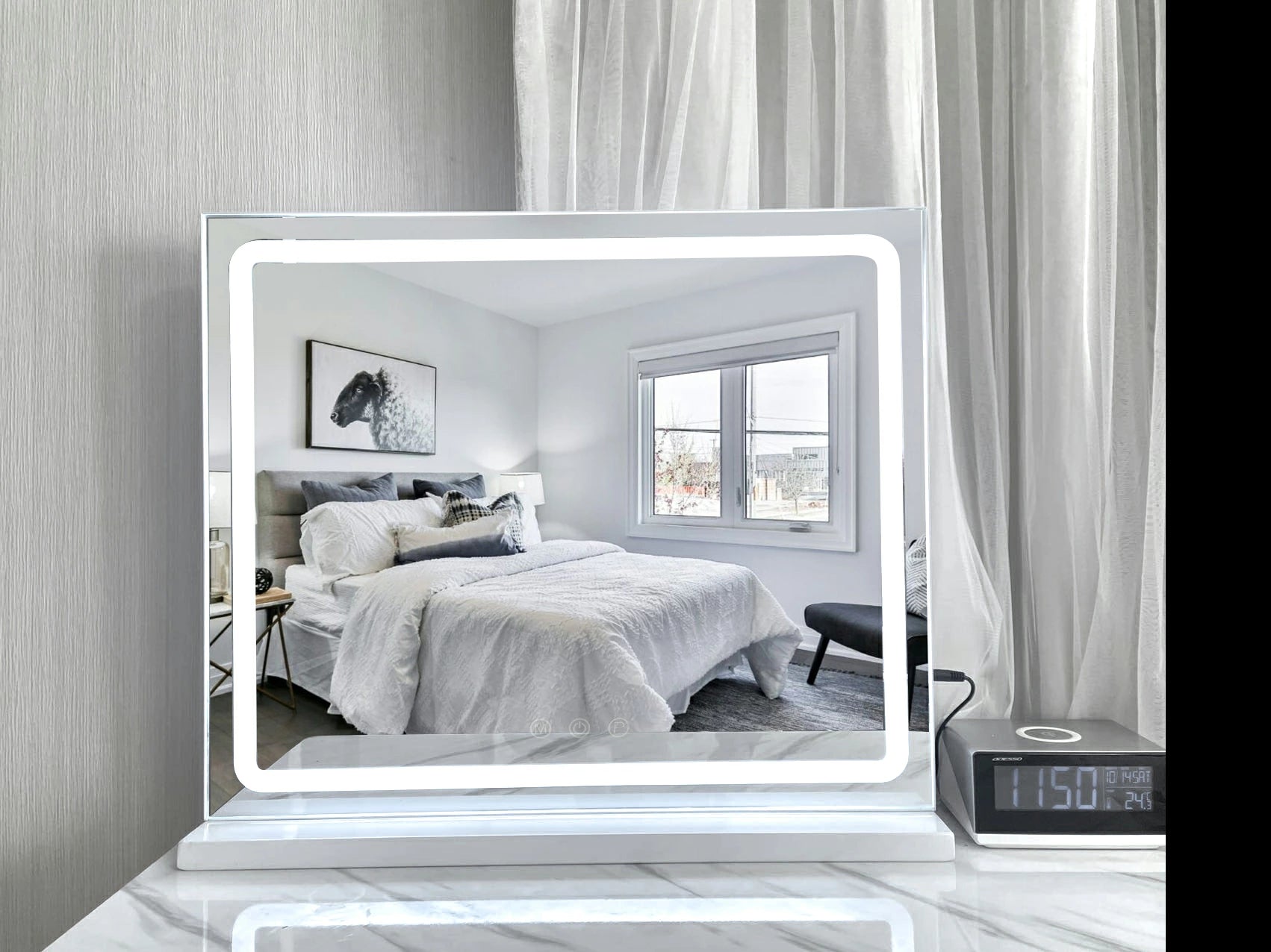 化粧鏡 女優ミラー 卓上用 / 壁掛け ハリウッドミラー 大型化粧鏡 3色照明モード 明るさ調節可能 LEDバックライト付き 拡大鏡付き MR02