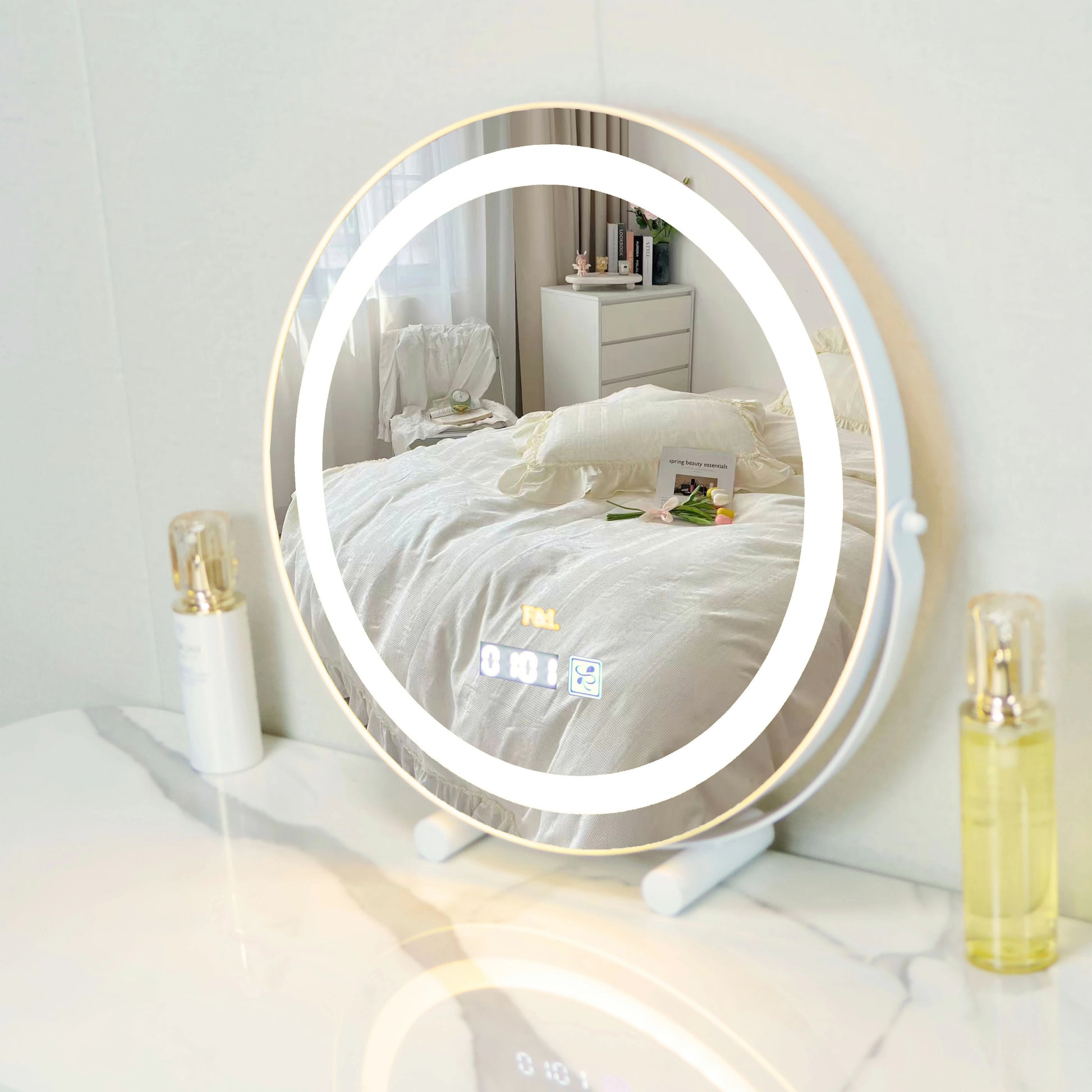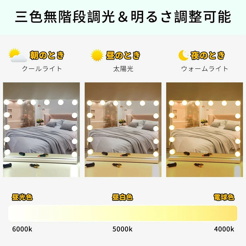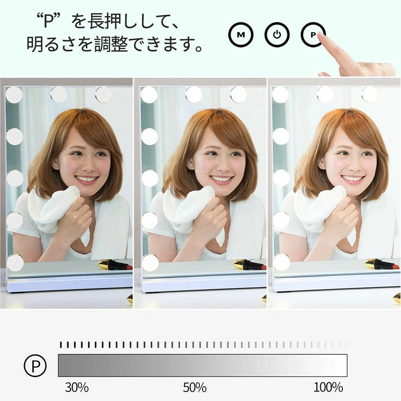 女優ミラー オシャレ 化粧ミラー ドレッサー ミラー 化粧鏡 コンパクト 卓上鏡 白 ホワイト 卓上用 ミラー ハリウッドミラー サロン 可愛い 女性大人気 LEDミラー ライト 三段調節 幅50/55/60cm 高さ42/47/52cm MR10